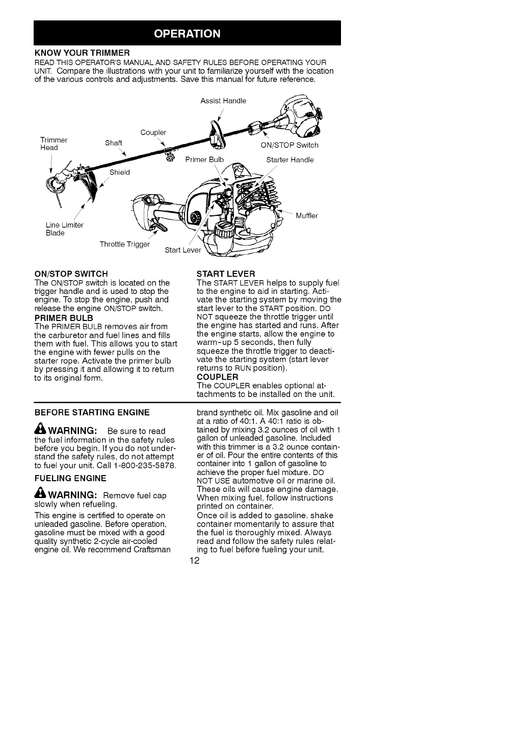 Craftsman 358791170 User Manual GAS TRIMMER Manuals And Guides L0901278