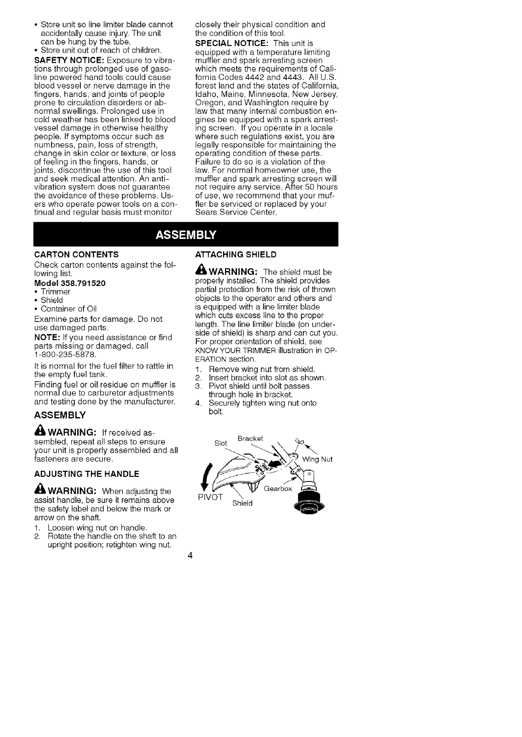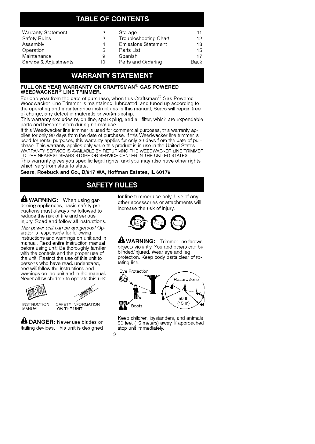 Craftsman 358791520 User Manual WEEDWACKER Manuals And Guides L0608467