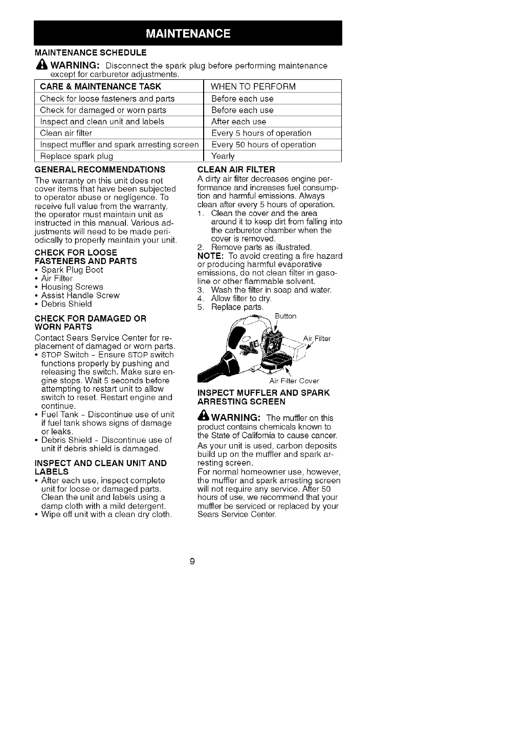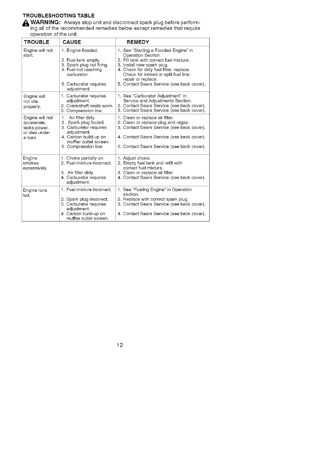 This warranty excludes nylon line, spark plug, and air filter, which are expendable