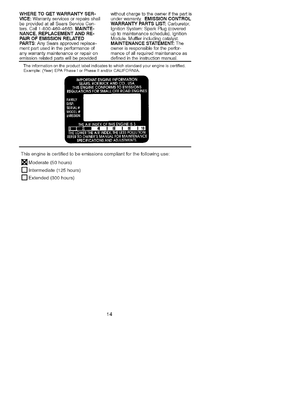 FULL ONE YEAR WARRANTY ON CRAFTSMAN ® GAS POWERED