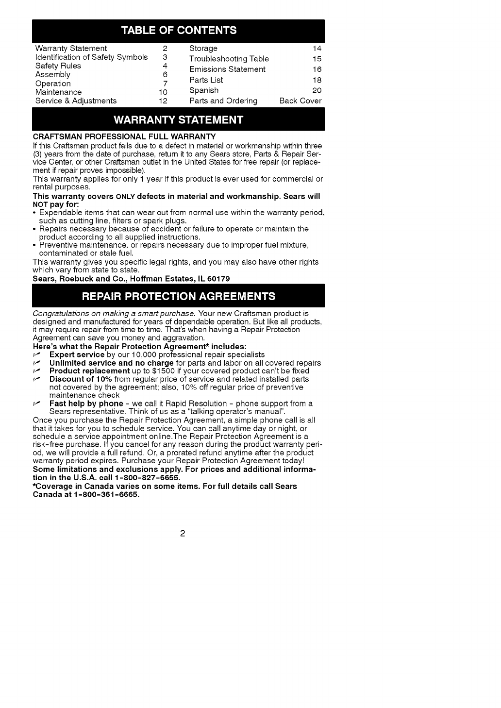 CRAFTSMAN PROFESSIONAL FULL WARRANTY