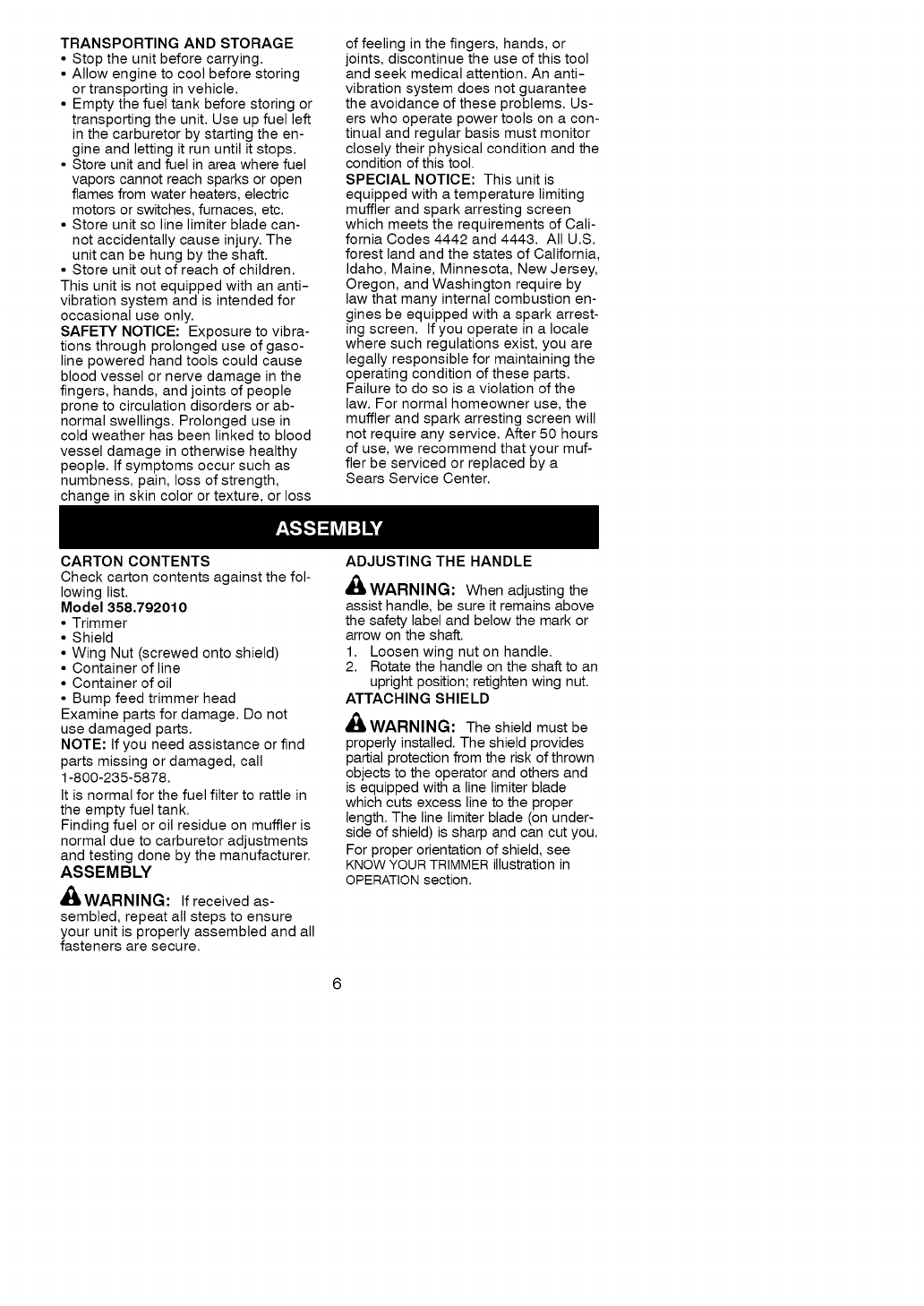Craftsman 358792010 User Manual TRIMMER Manuals And Guides L0902323