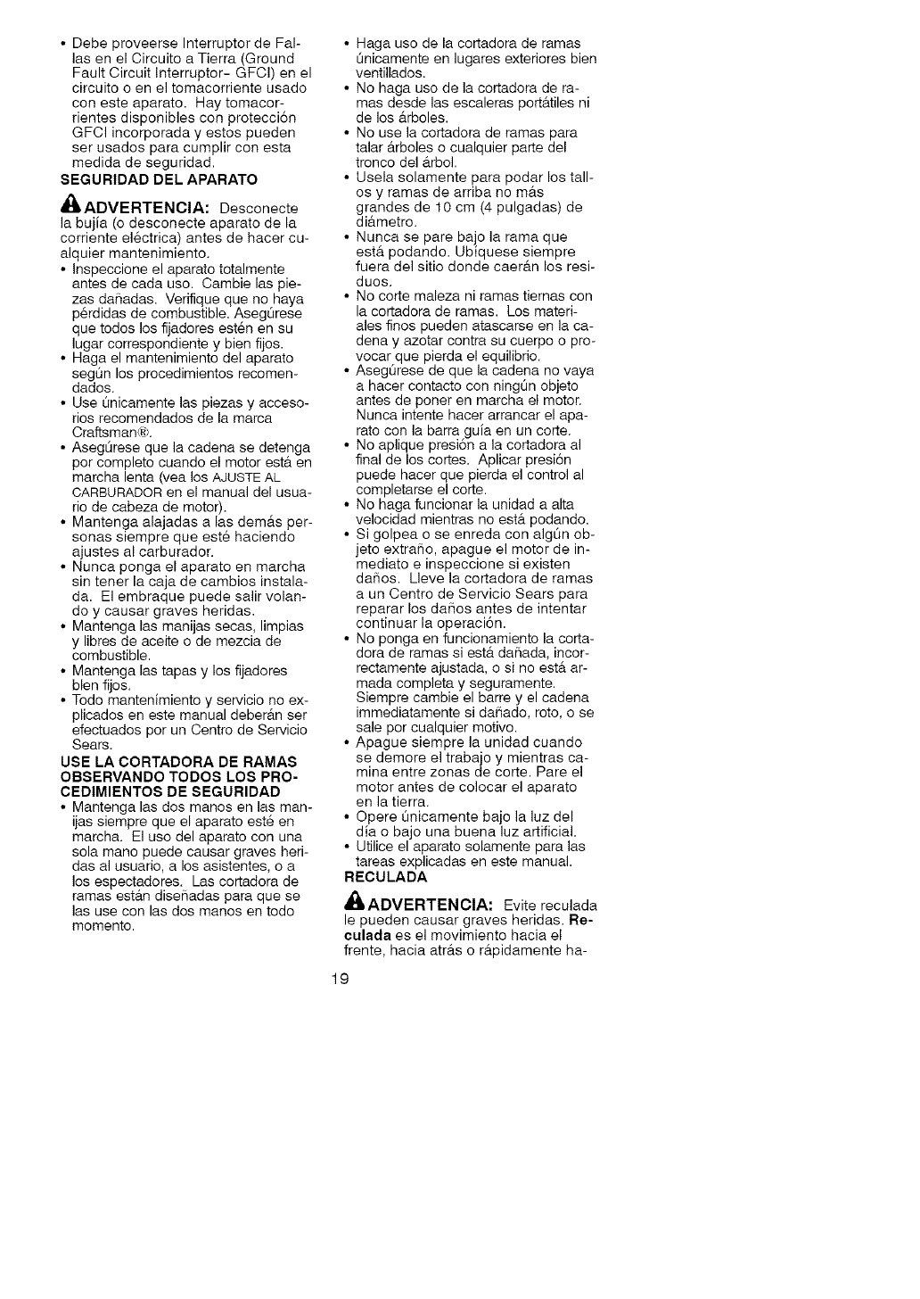 protection when operating this unit. Do not stand beneath branch beh_g