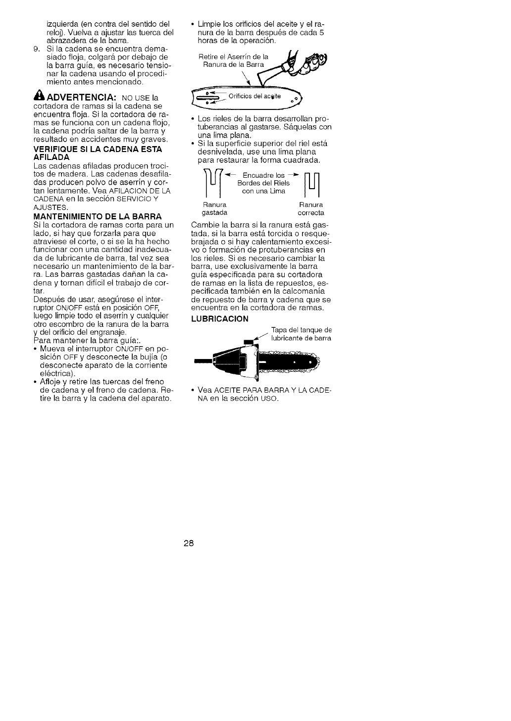 • Lubrique la cadena y envu61vala en