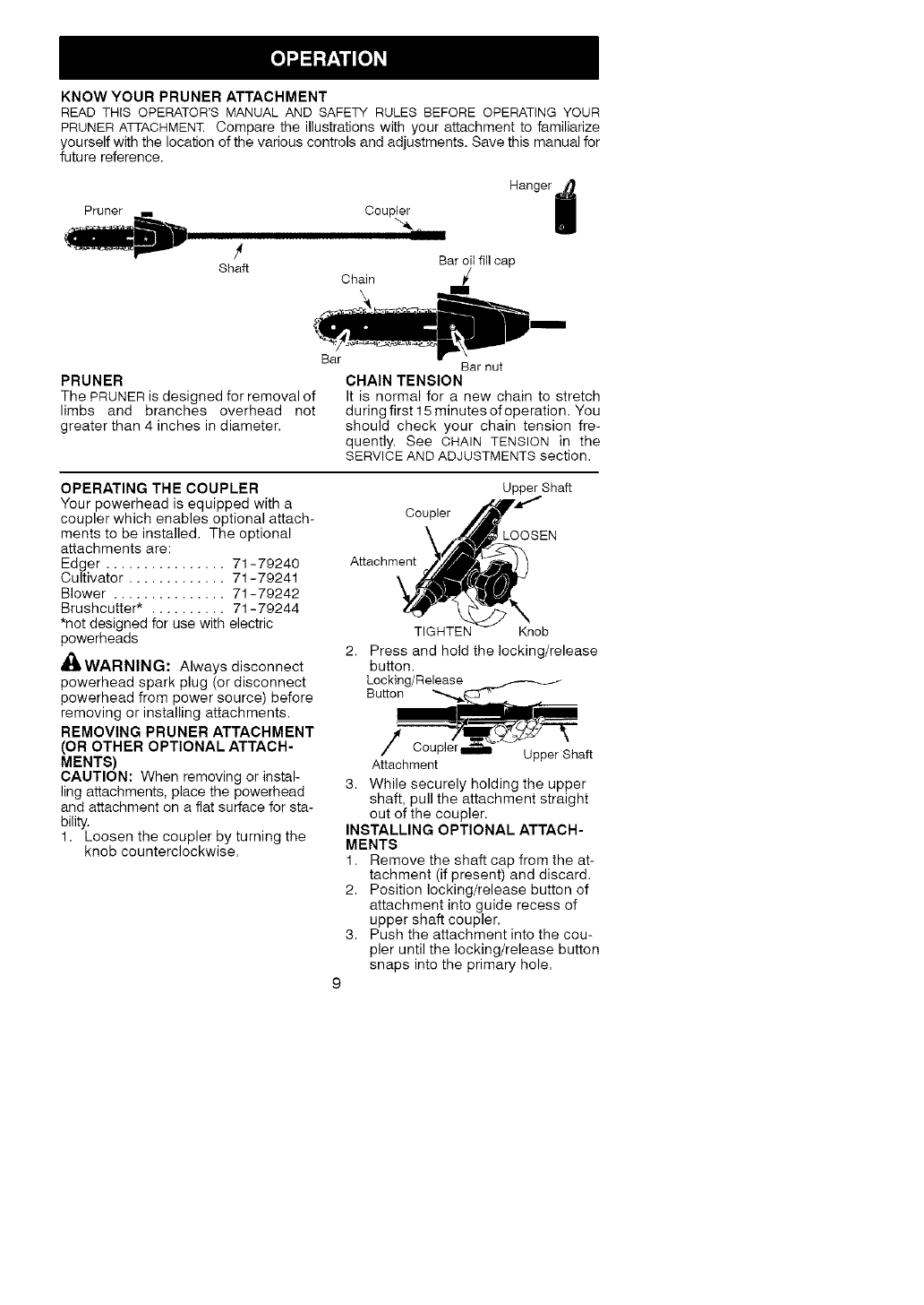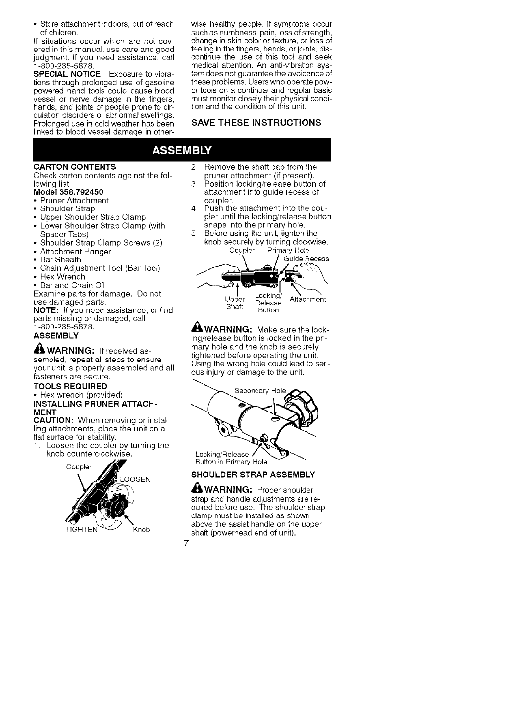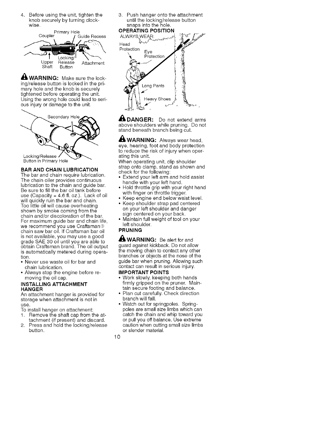 Craftsman 358792450 User Manual POLE PRUNER ATTACHMENT Manuals And Guides L0609423
