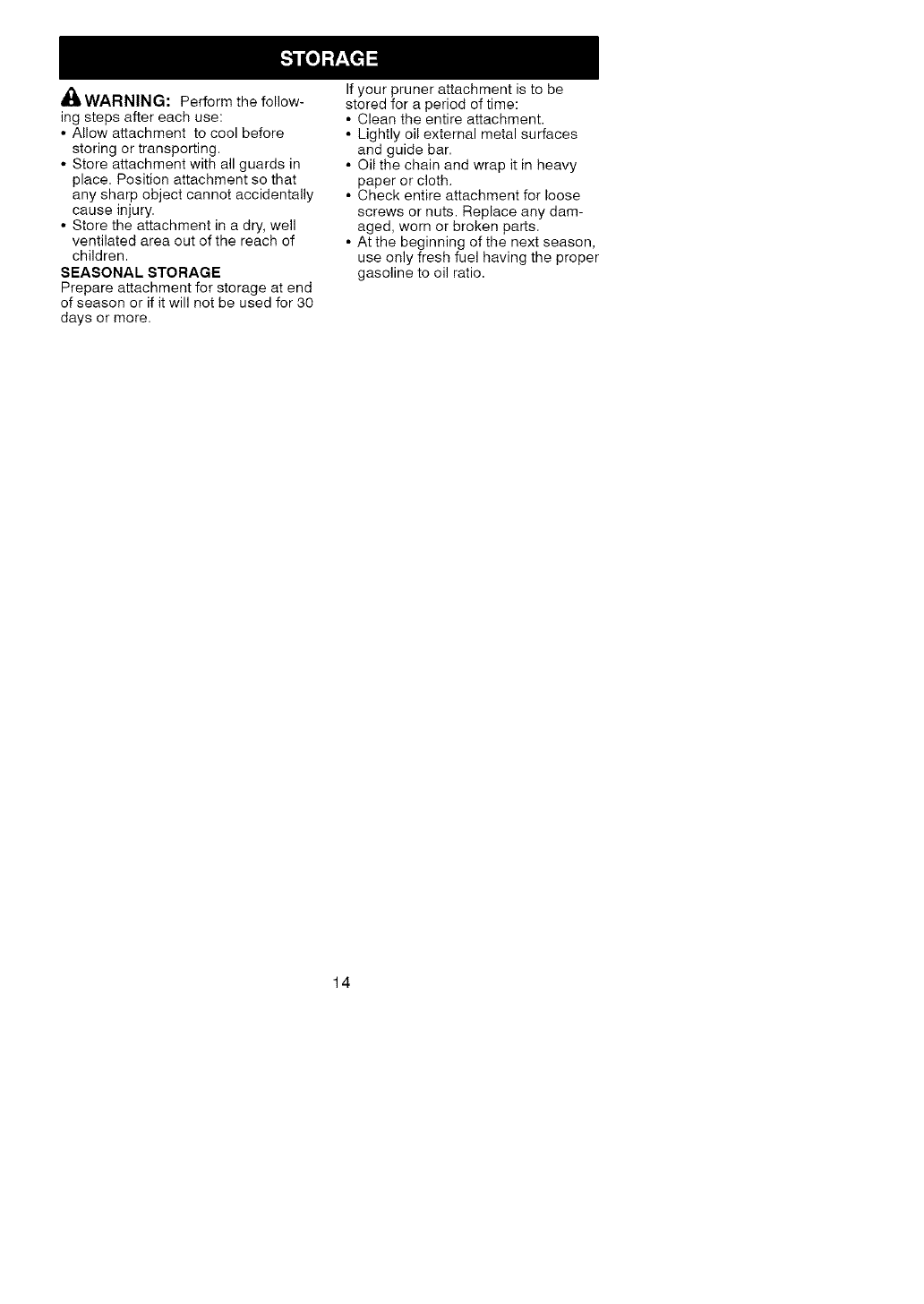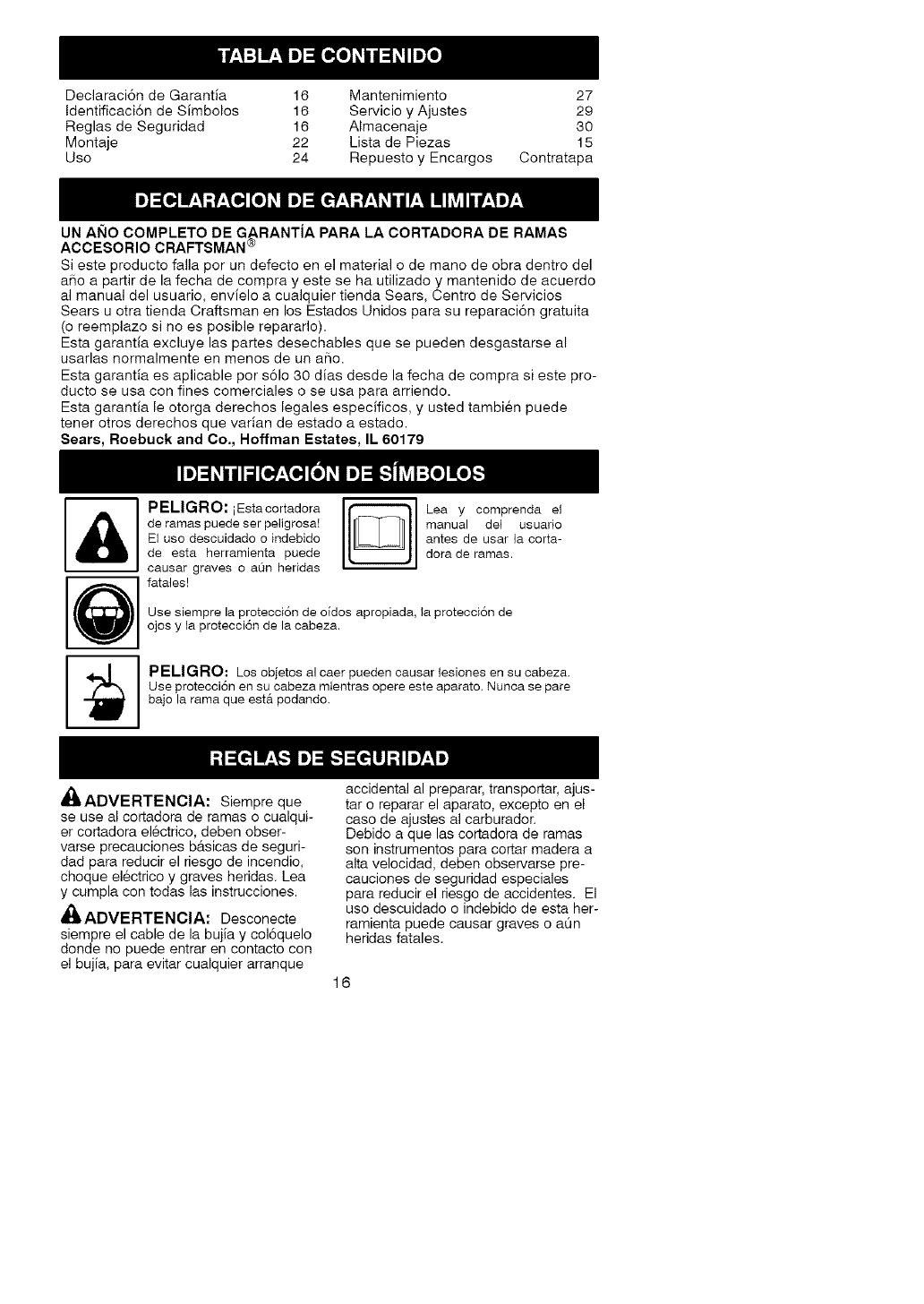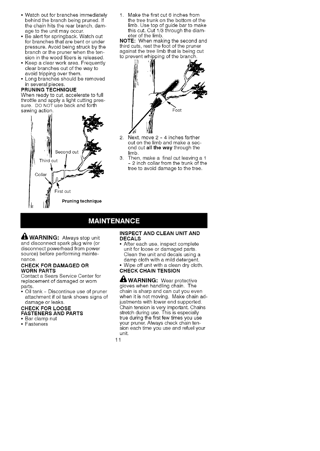 ONE YEAR FULL WARRANTY ON CRAFTSMAN ® PRUNER ATTACHMENT