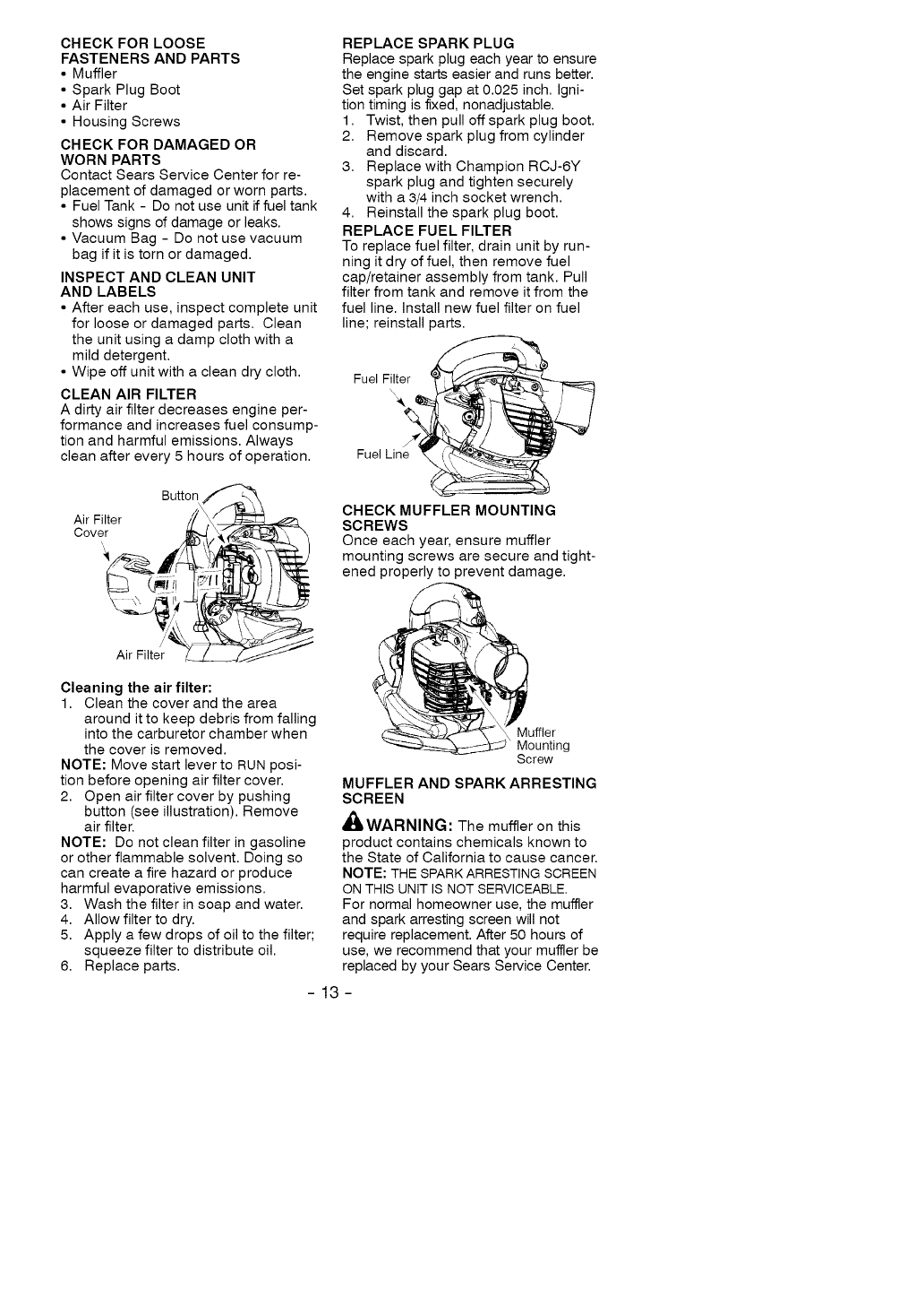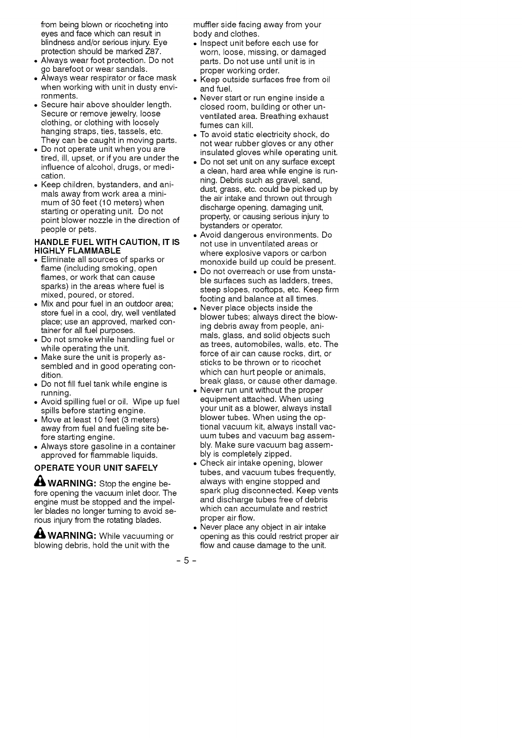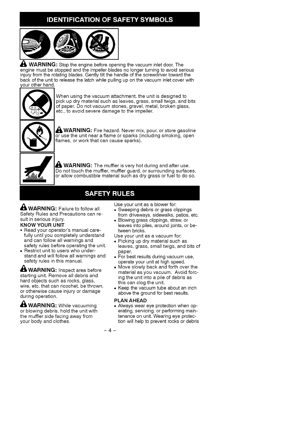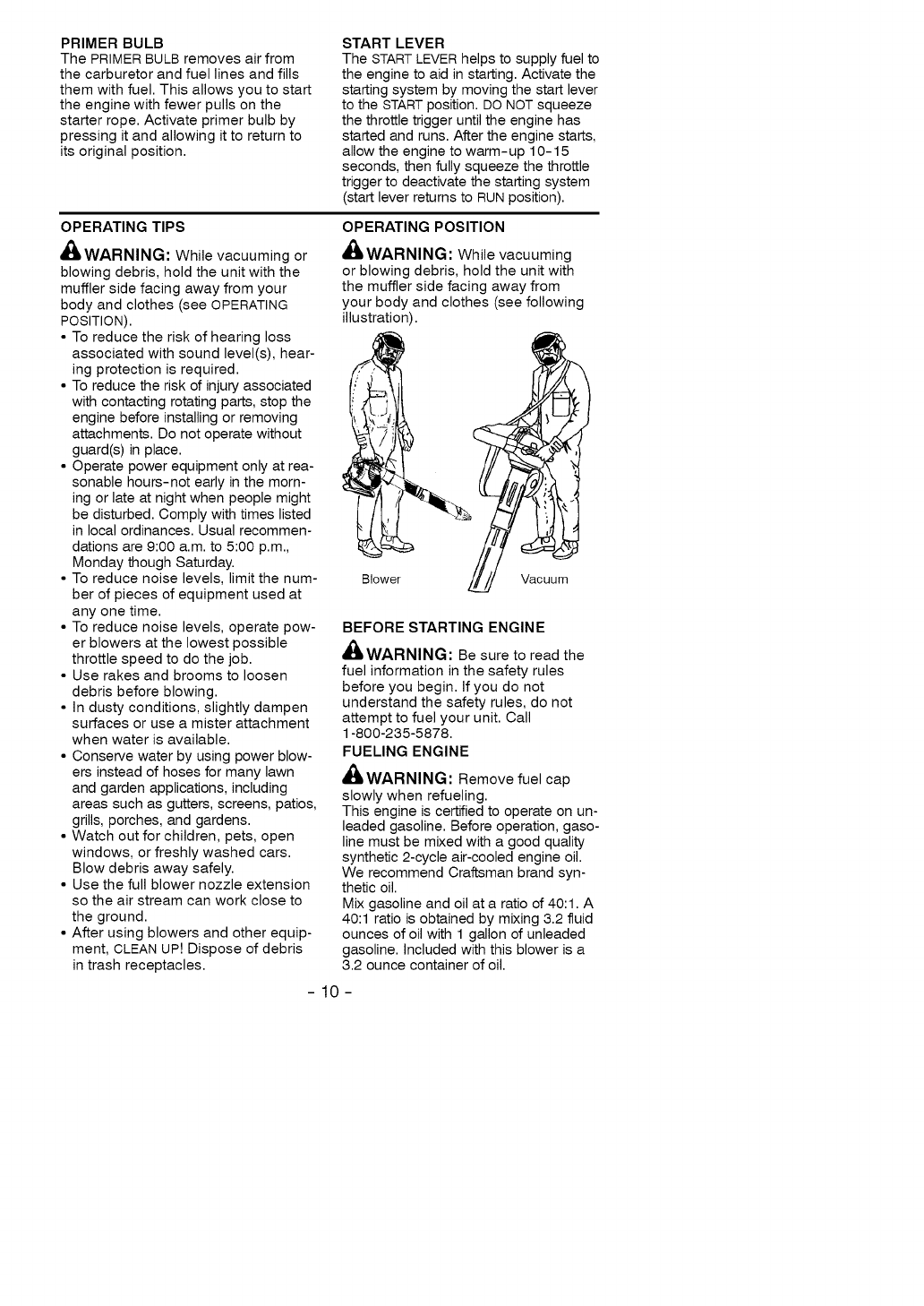 Craftsman 358794701 1106141L User Manual GAS BLOWER/VAC Manuals And Guides