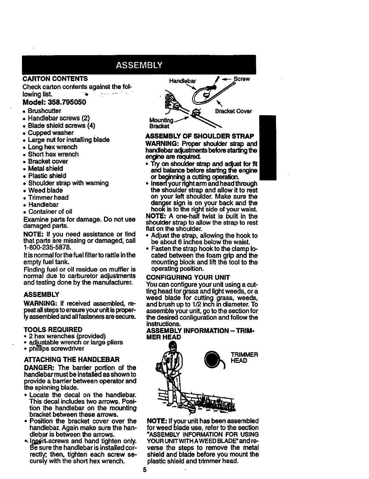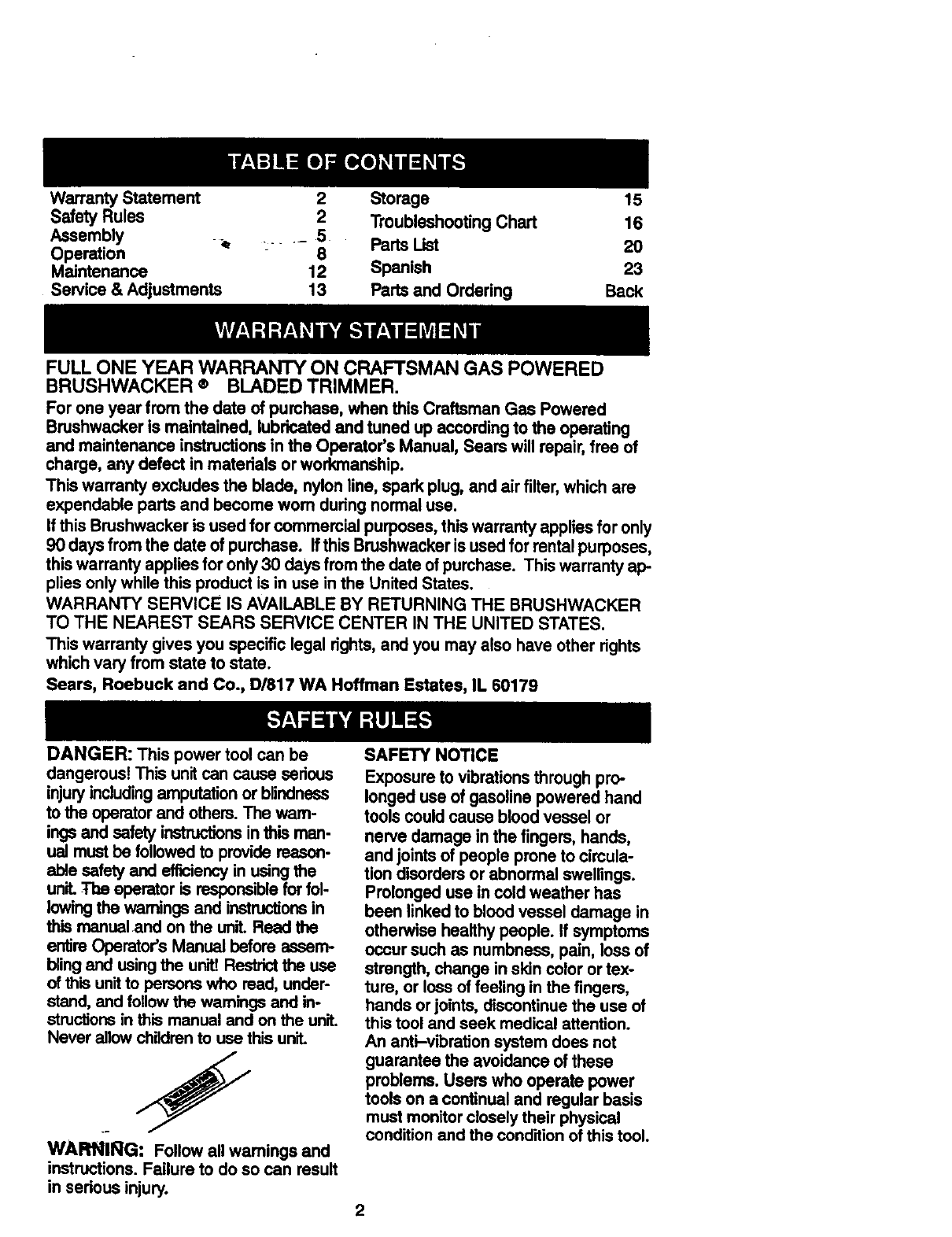 Craftsman 358795050 User Manual GASOLINE BRUSHWACKER Manuals And Guides 98110056