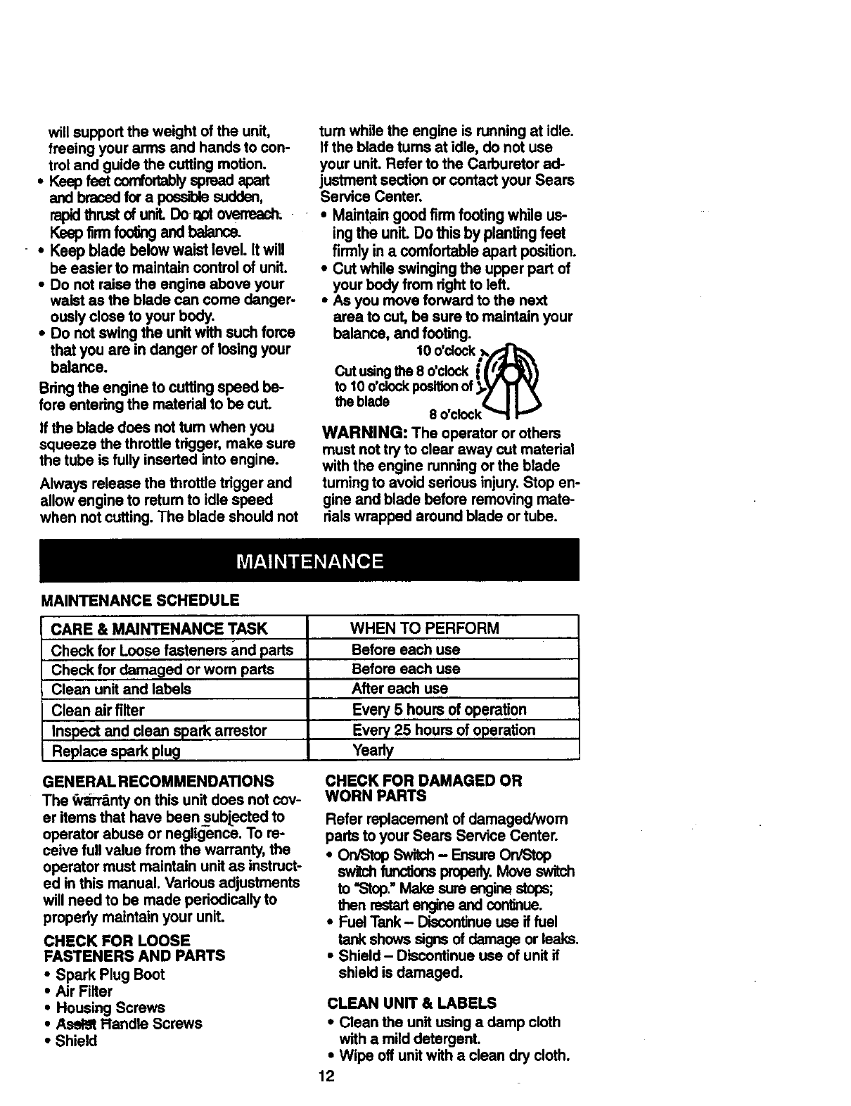 Brushwackeris maintained, lubricatedand tuned up accordingto the operating
