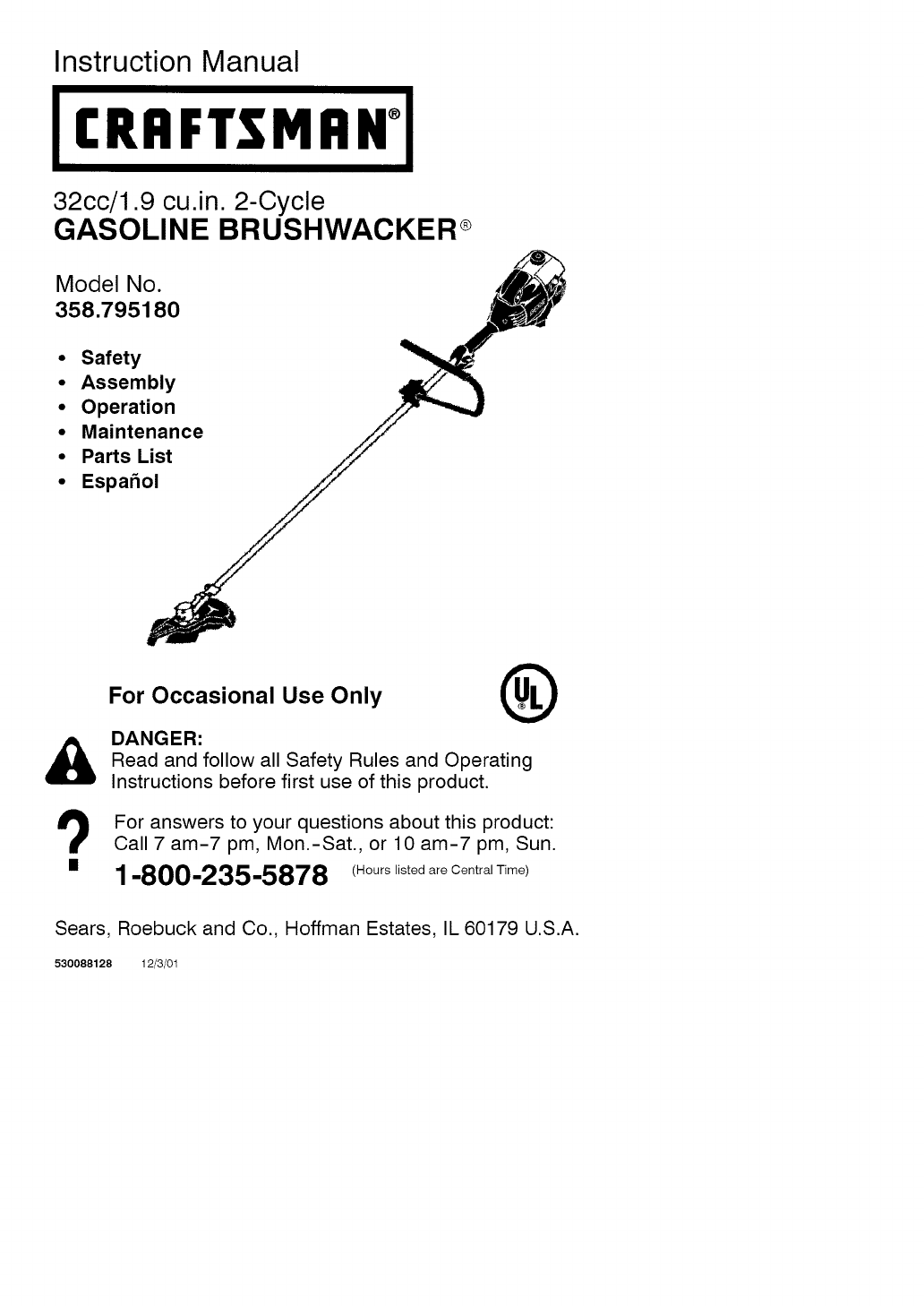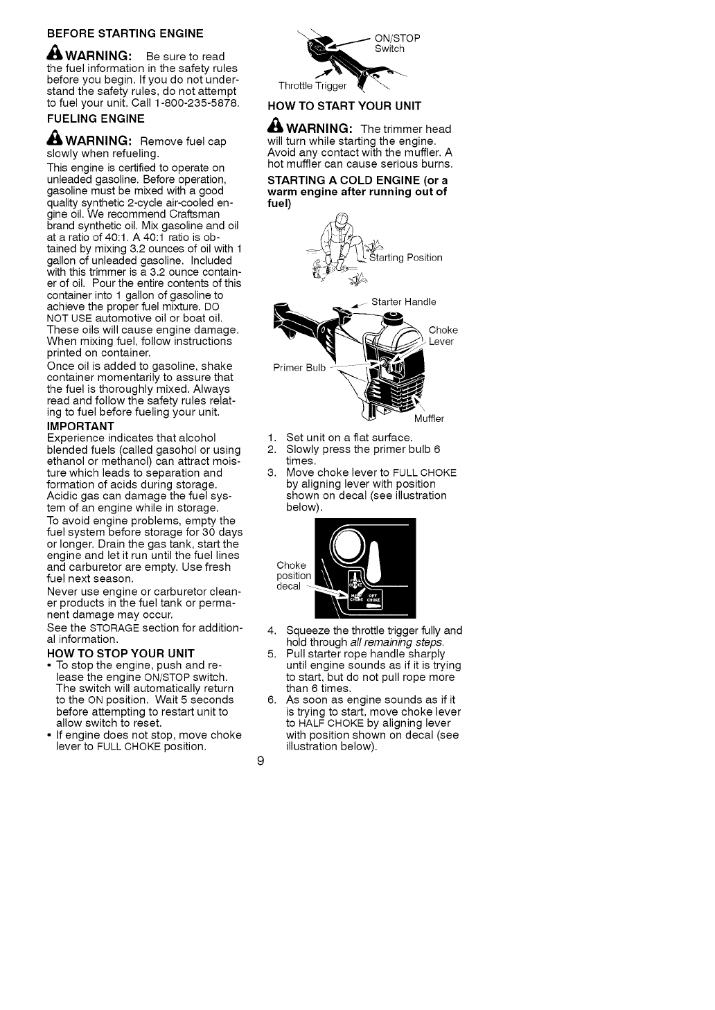 Craftsman 358795180 User Manual TRIMMER Manuals And Guides L0903677