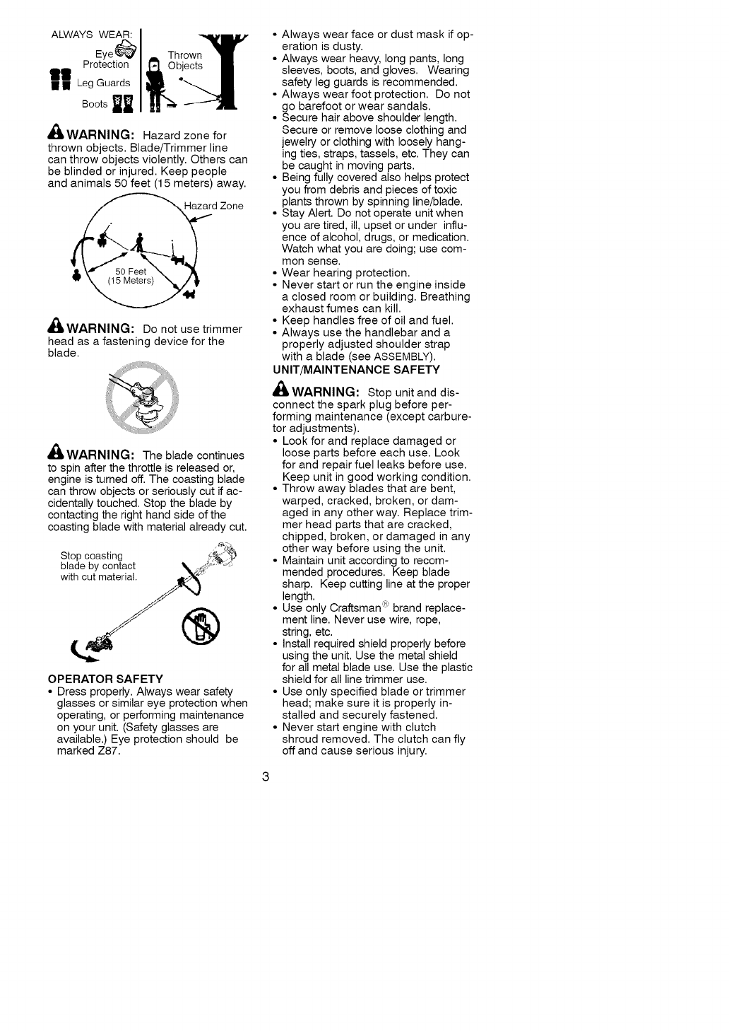 thrown objects. Blade/Trimmer line
