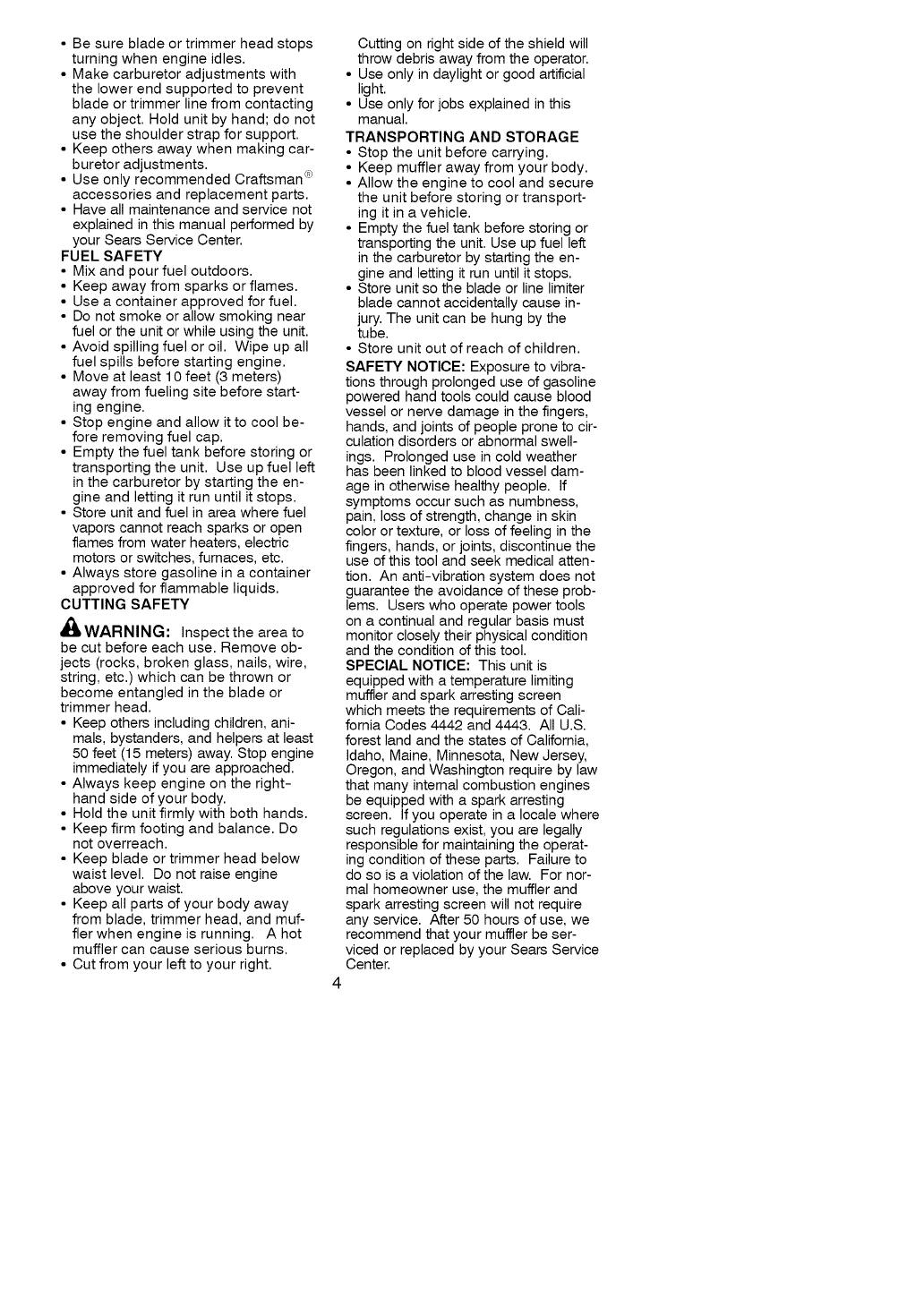 FULL TWO YEAR WARRANTY ON CRAFTSMAN ® GAS POWERED