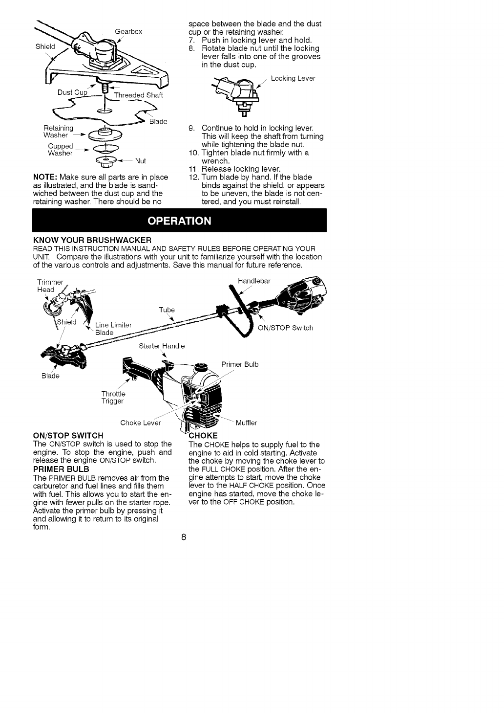 WARRANTY SERVICE IS AVAILABLE BY RETURNING THE BRUSHWACKER TO THE