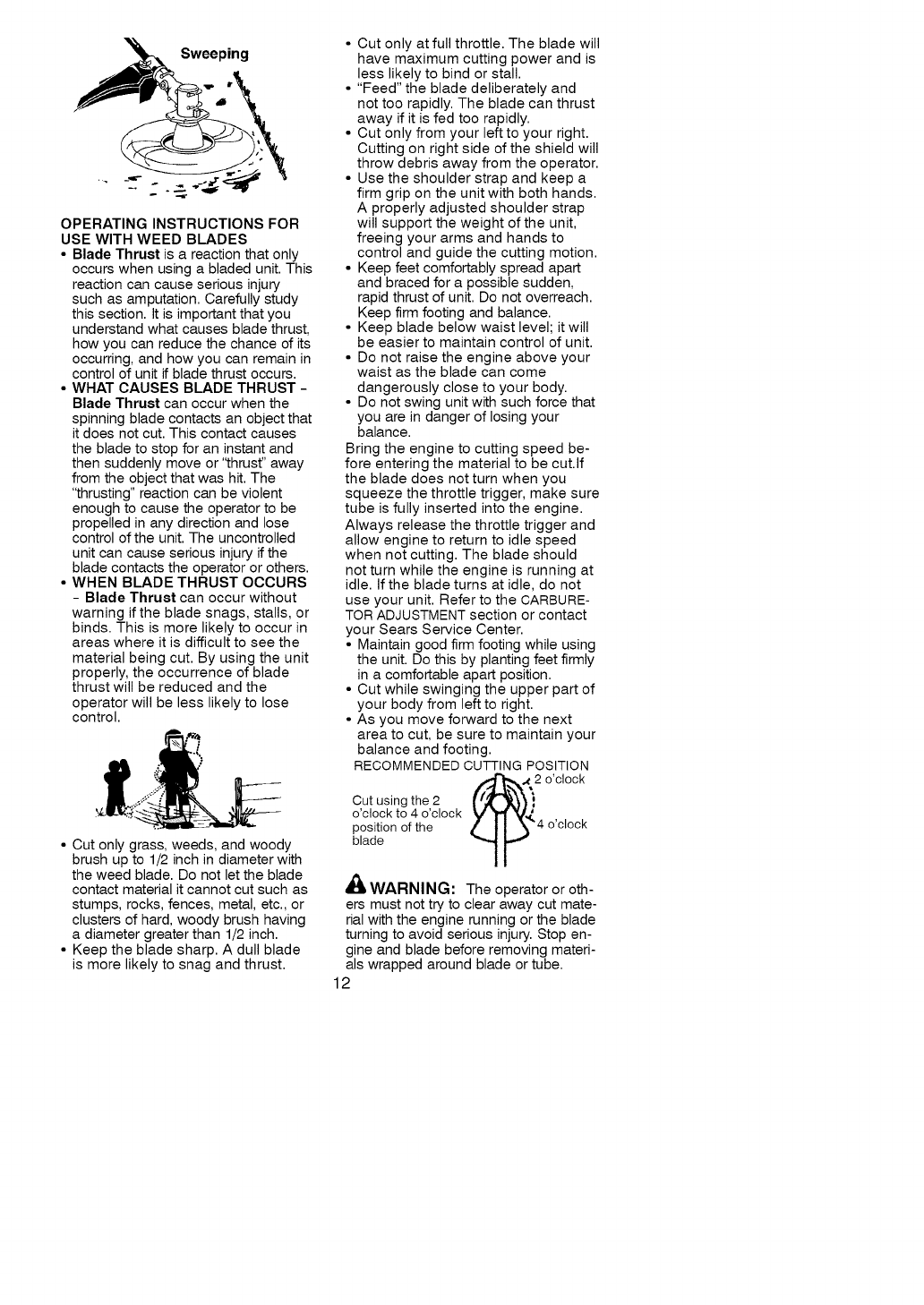 cut. Blade thrust can cause amputa-