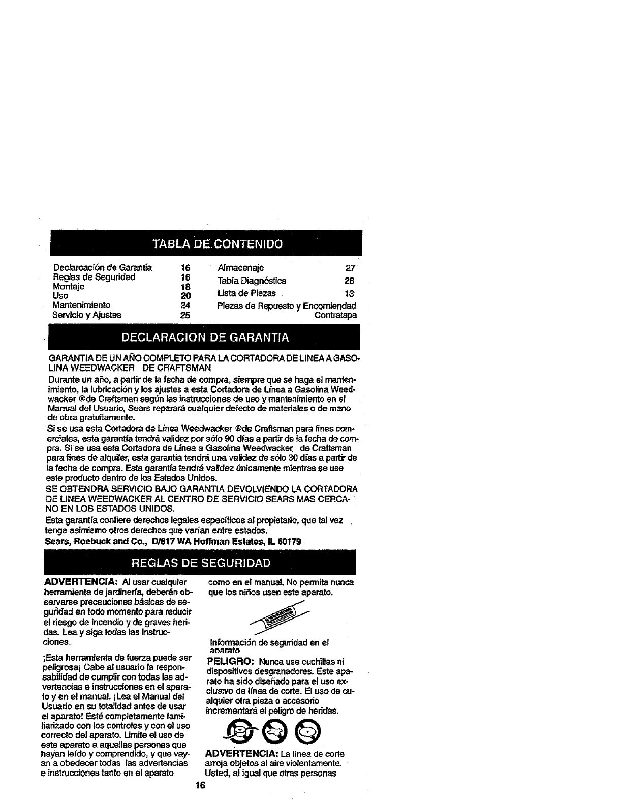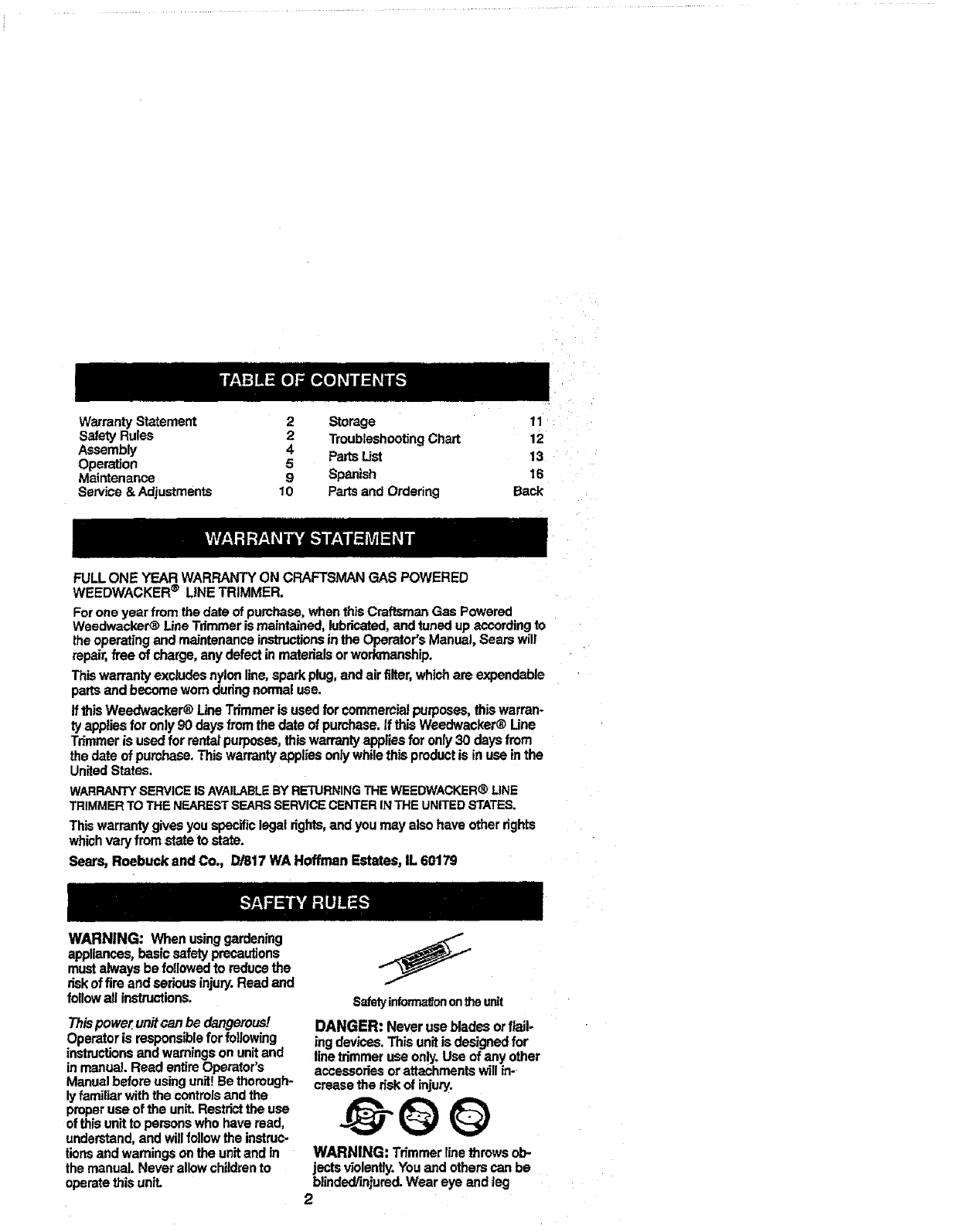 Craftsman 358795310 User Manual Gas, Line Trimmers/Weedwackers Manuals And Guides L0804458