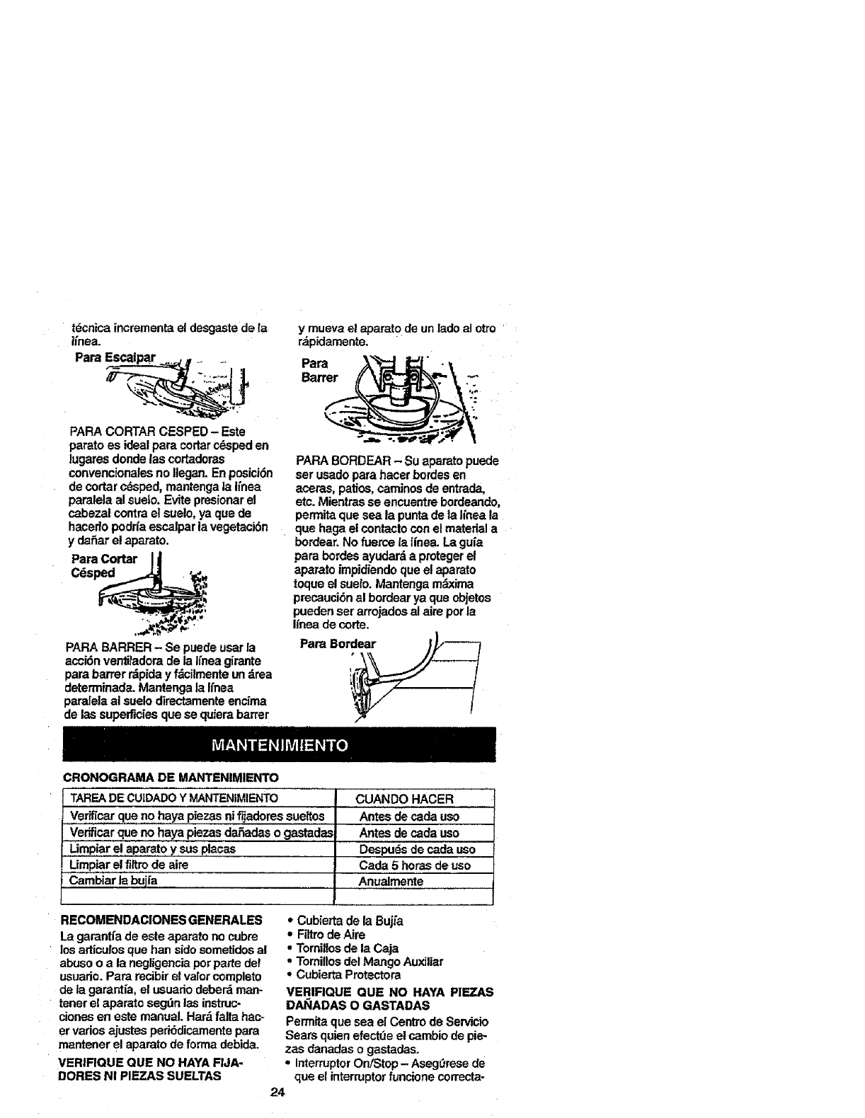 This warranty excludes nylon line,spark plug, and air filter,whtchare expendable