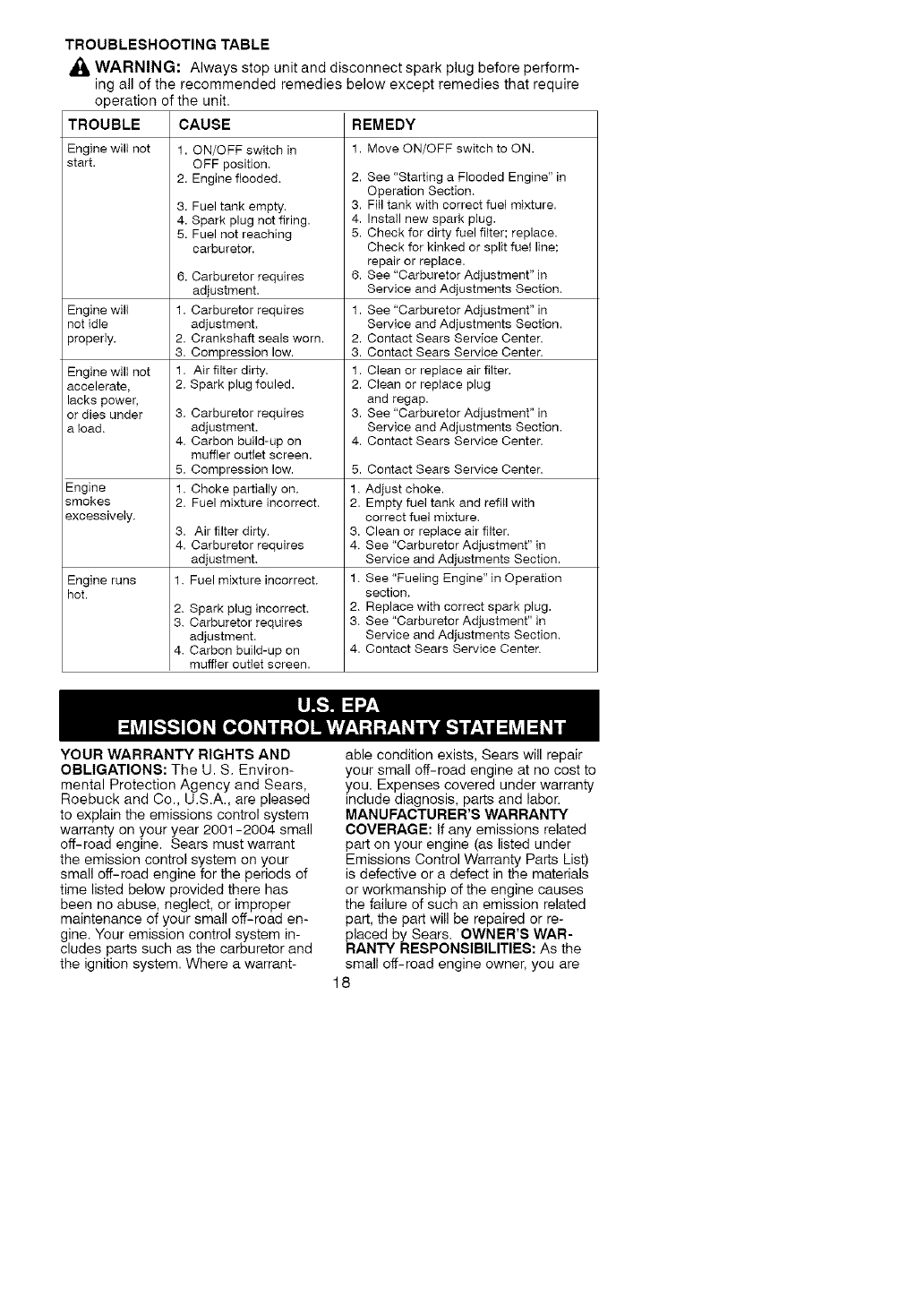 FULL ONE YEAR WARRANTY ON CRAFTSMAN ® GASOLINE POWERED