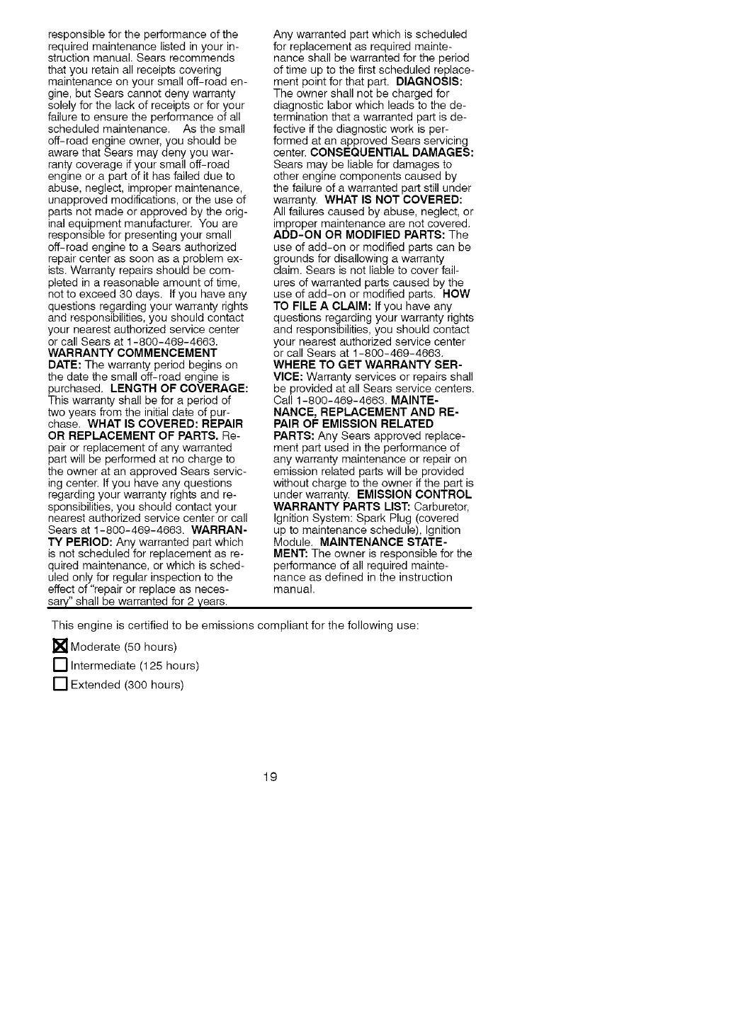 the operating and maintenance instructions in this manual, Sears will repair, free