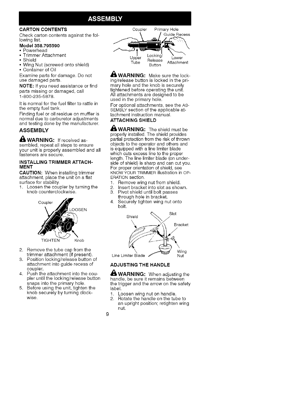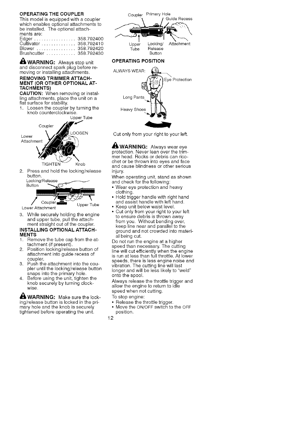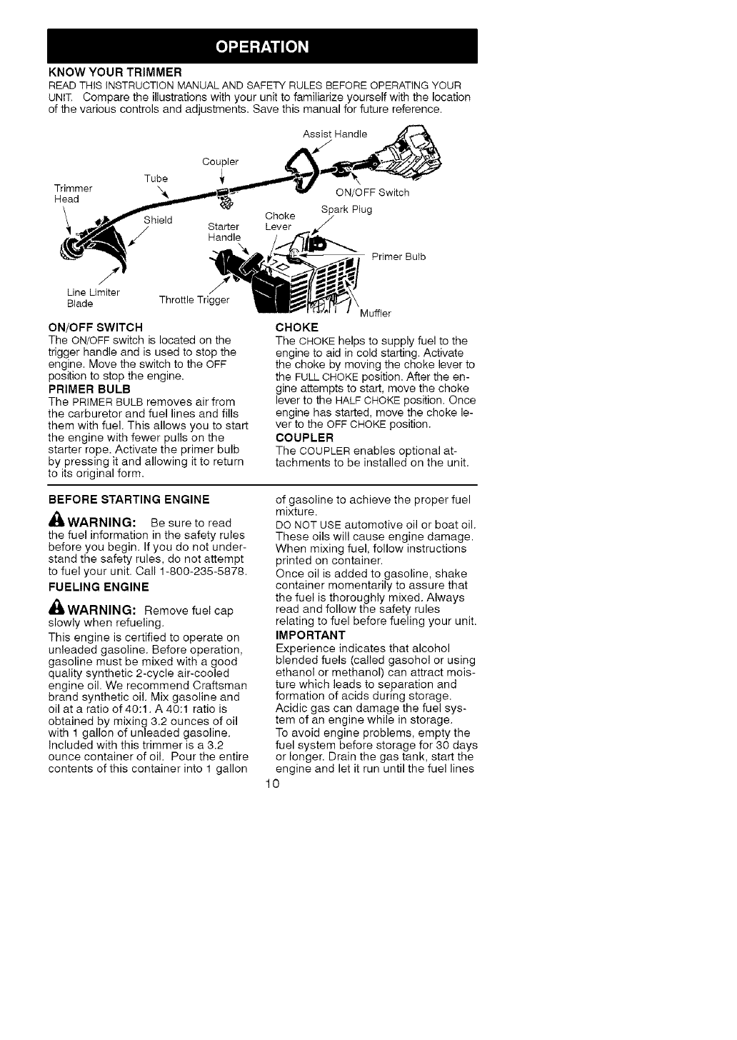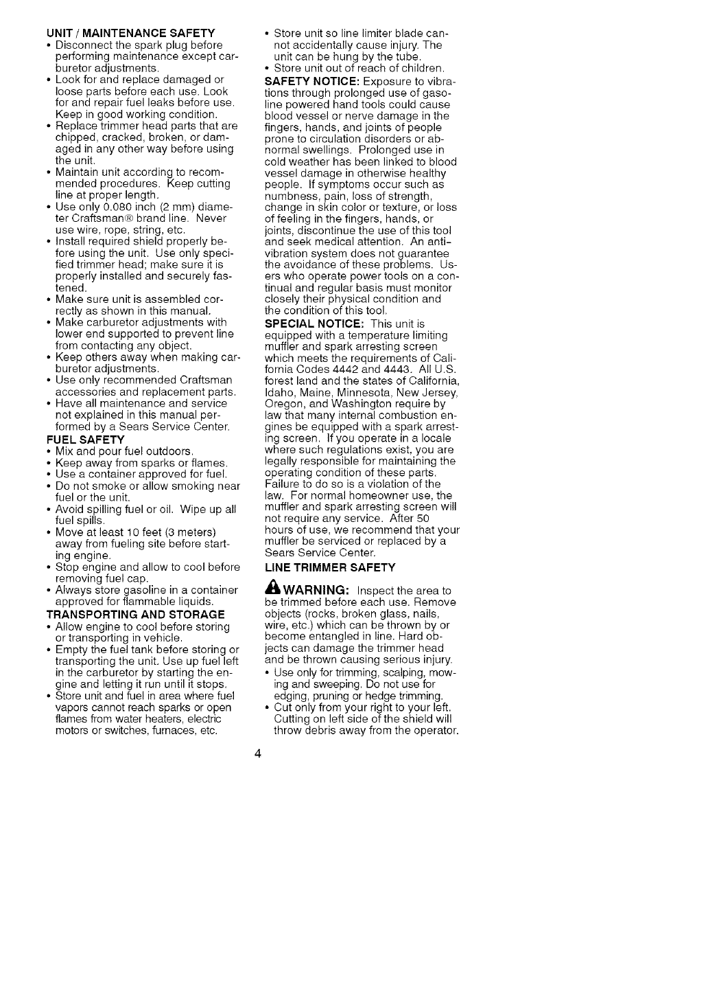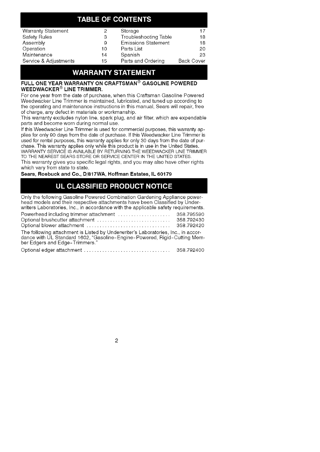 Craftsman 358795590 User Manual SEARS 28CC GAS BRUSHWACKER Manuals And Guides L0709062