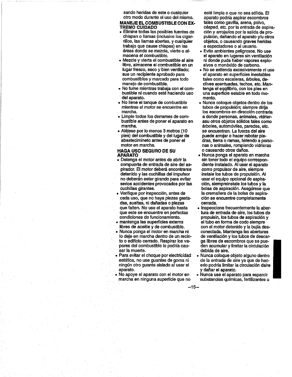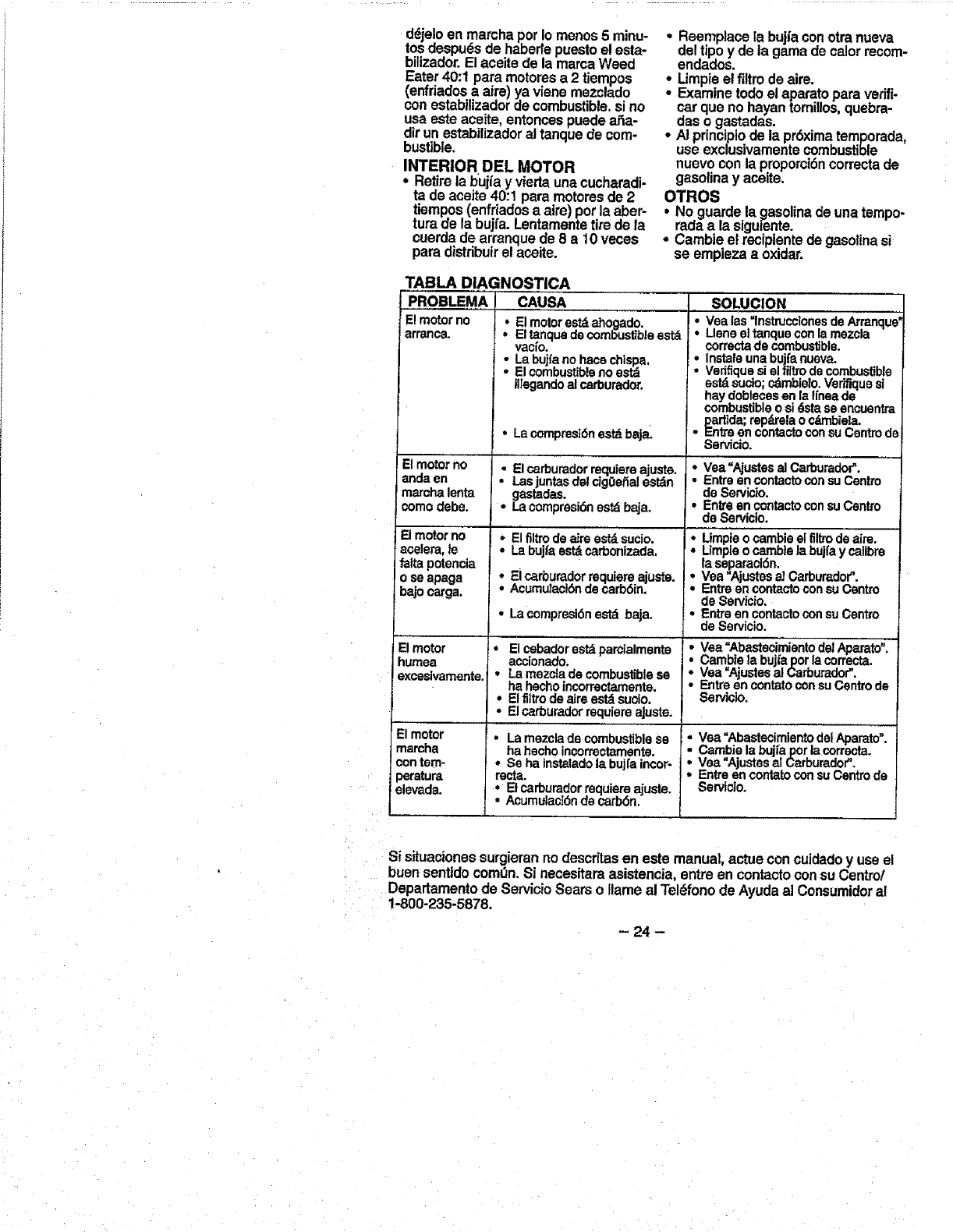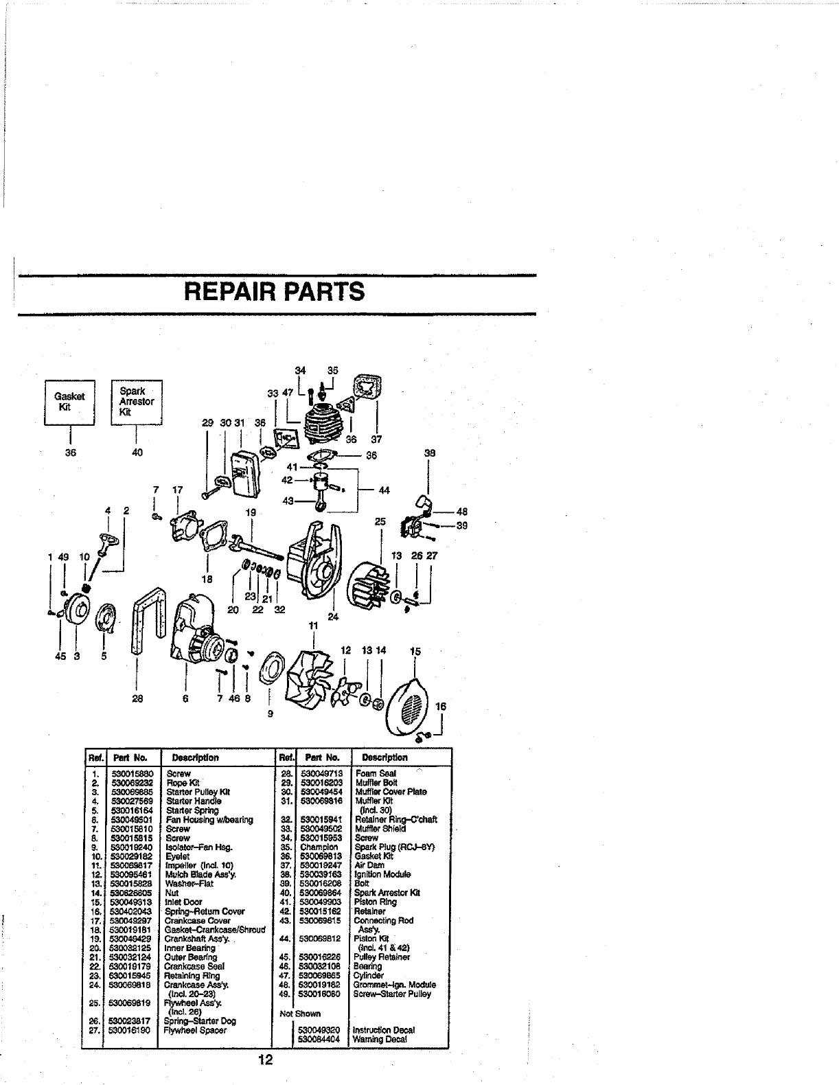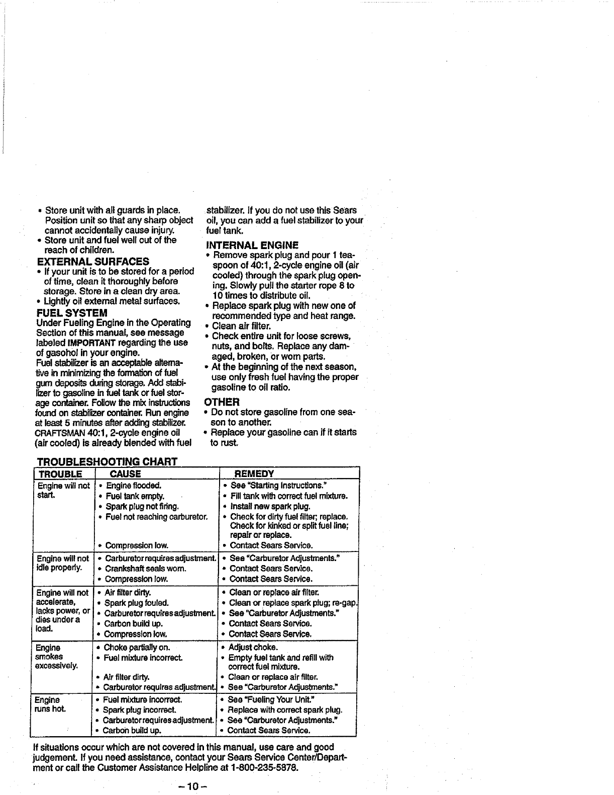 Thiswarrantyexcludesblowertubes, sparkplug,and aircleaner,whichare ex-