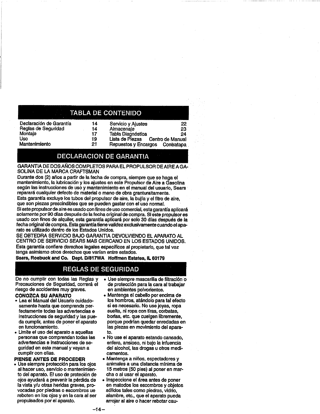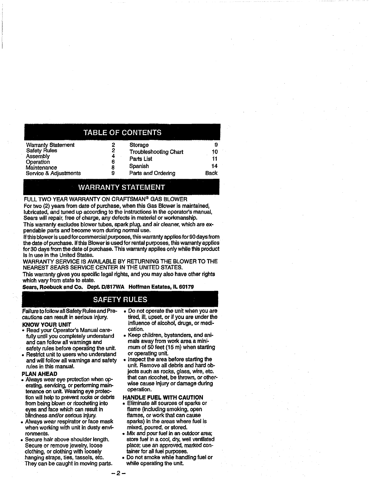 FULLTWO YEAR WARRANTY ON CRAFTSMAN®GAS BLOWER