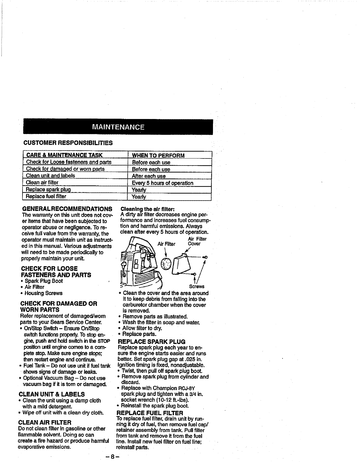 Craftsman 358797030 User Manual GAS BLOWER Manuals And Guides L0806067
