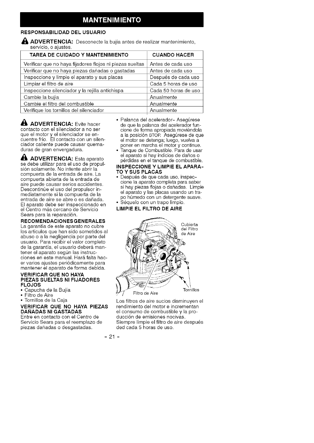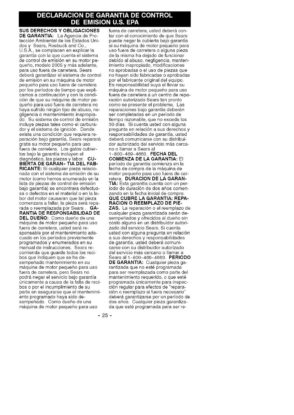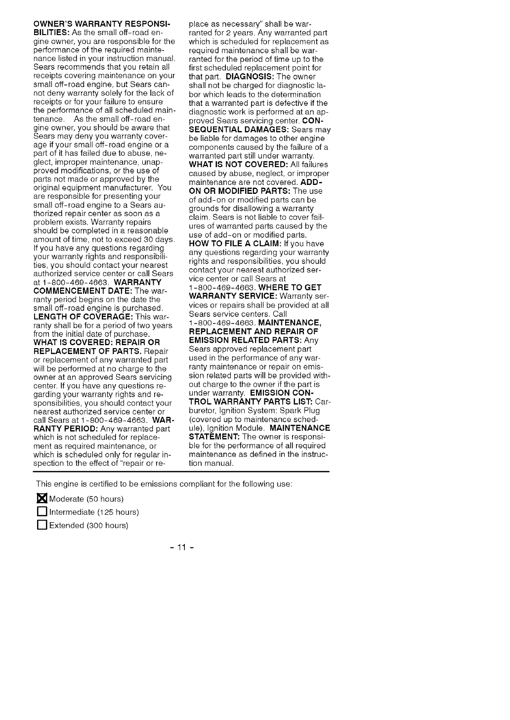 bricated, and tuned up according to the instructions in this manual, Sears will re-