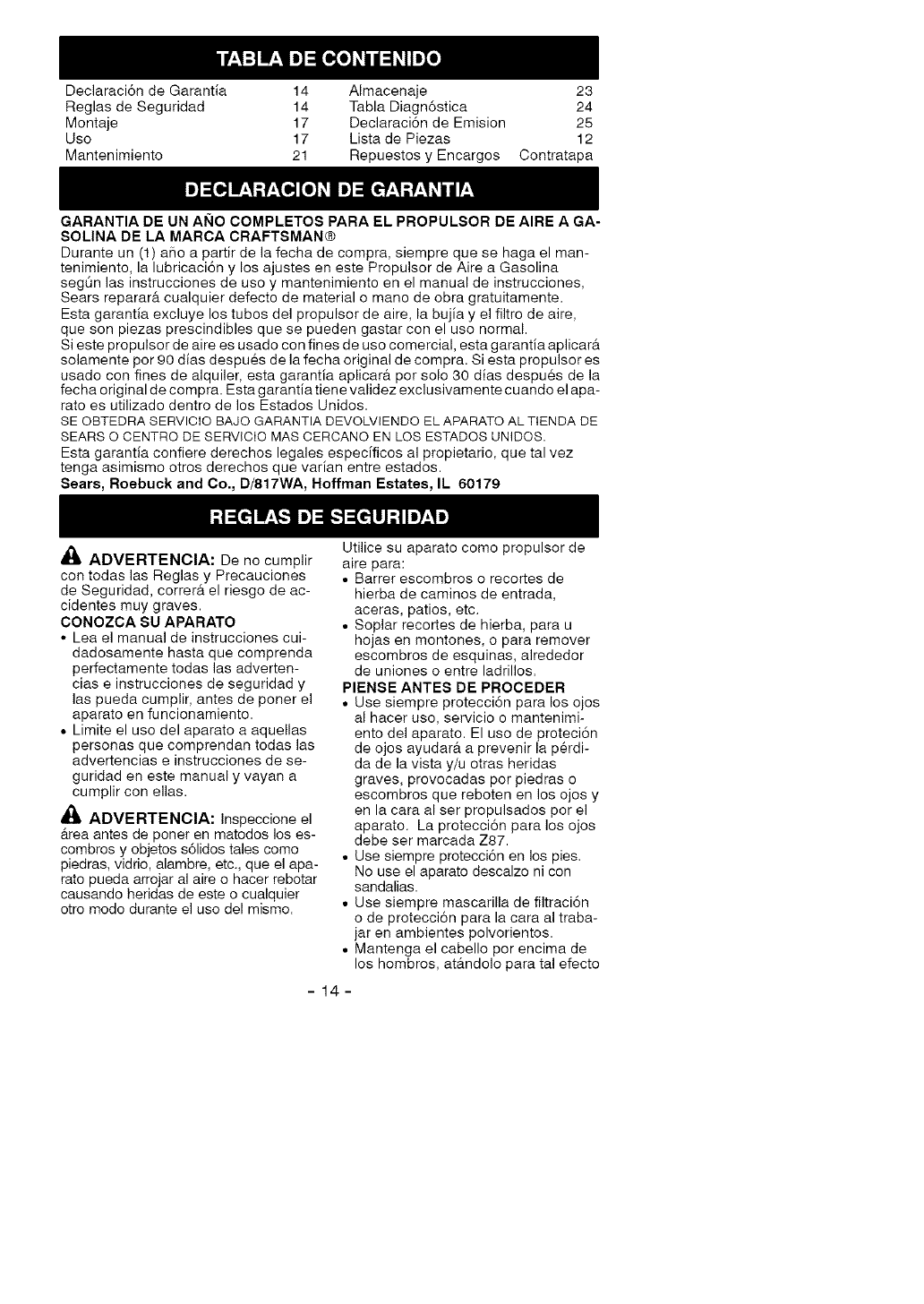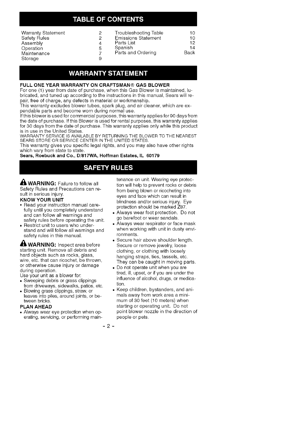 FULL ONE YEAR WARRANTY ON CRAFTSMAN@ GAS BLOWER
