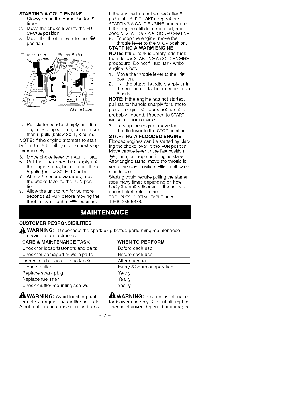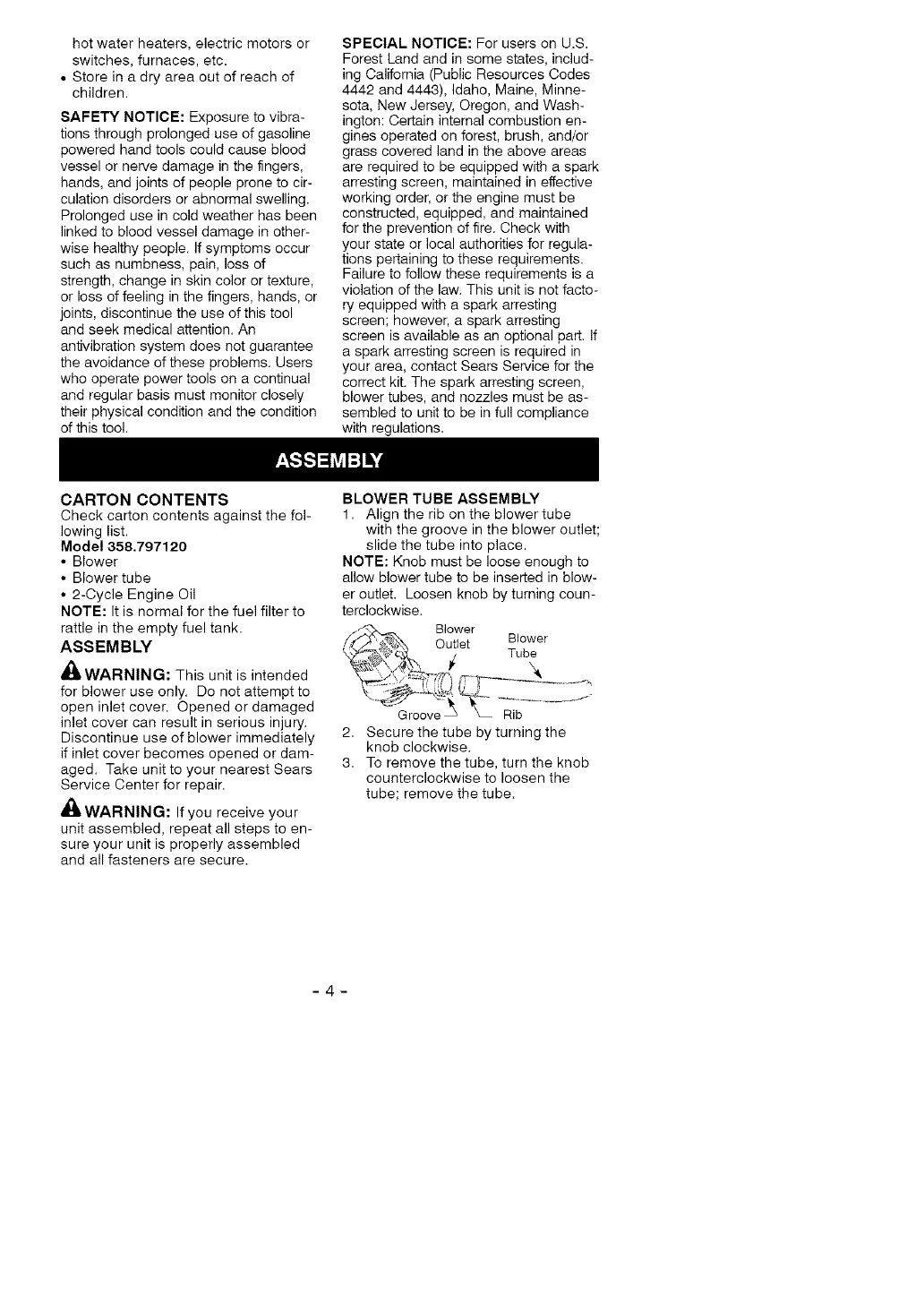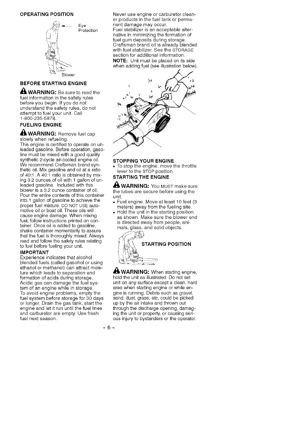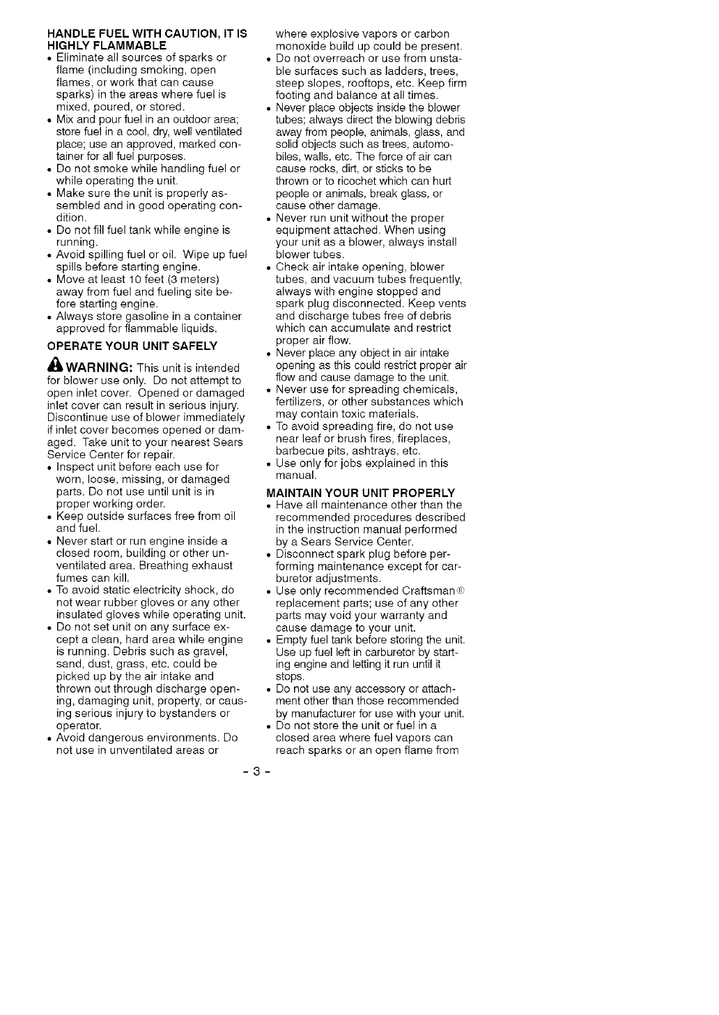 Craftsman 358797120 User Manual BLOWER Manuals And Guides L0520189