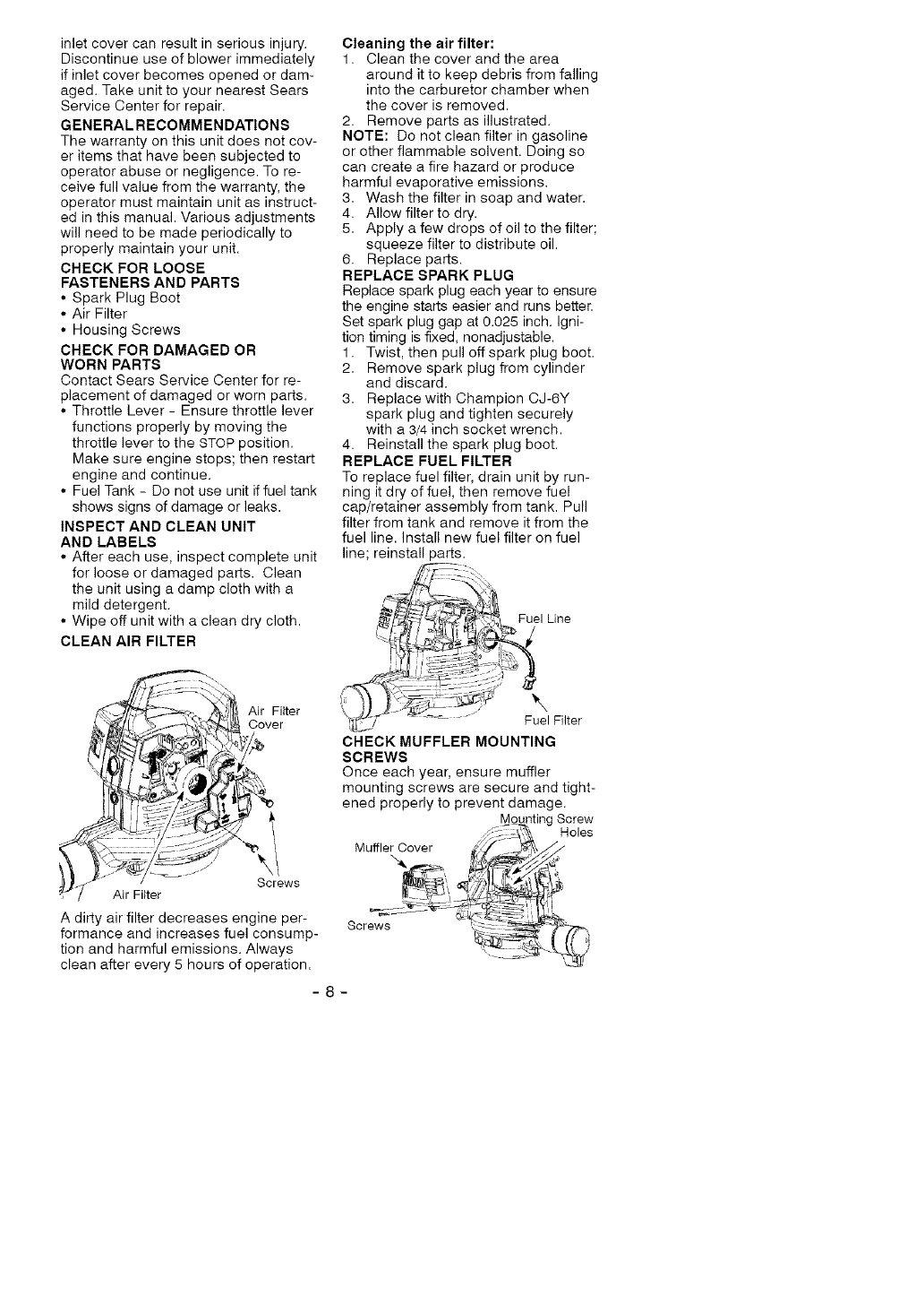 CRAFTSMAN Blower, Gas Manual L0520189 CRAFTSMAN Blower, Gas Owner's Manual, CRAFTSMAN Blower, Gas installation guides