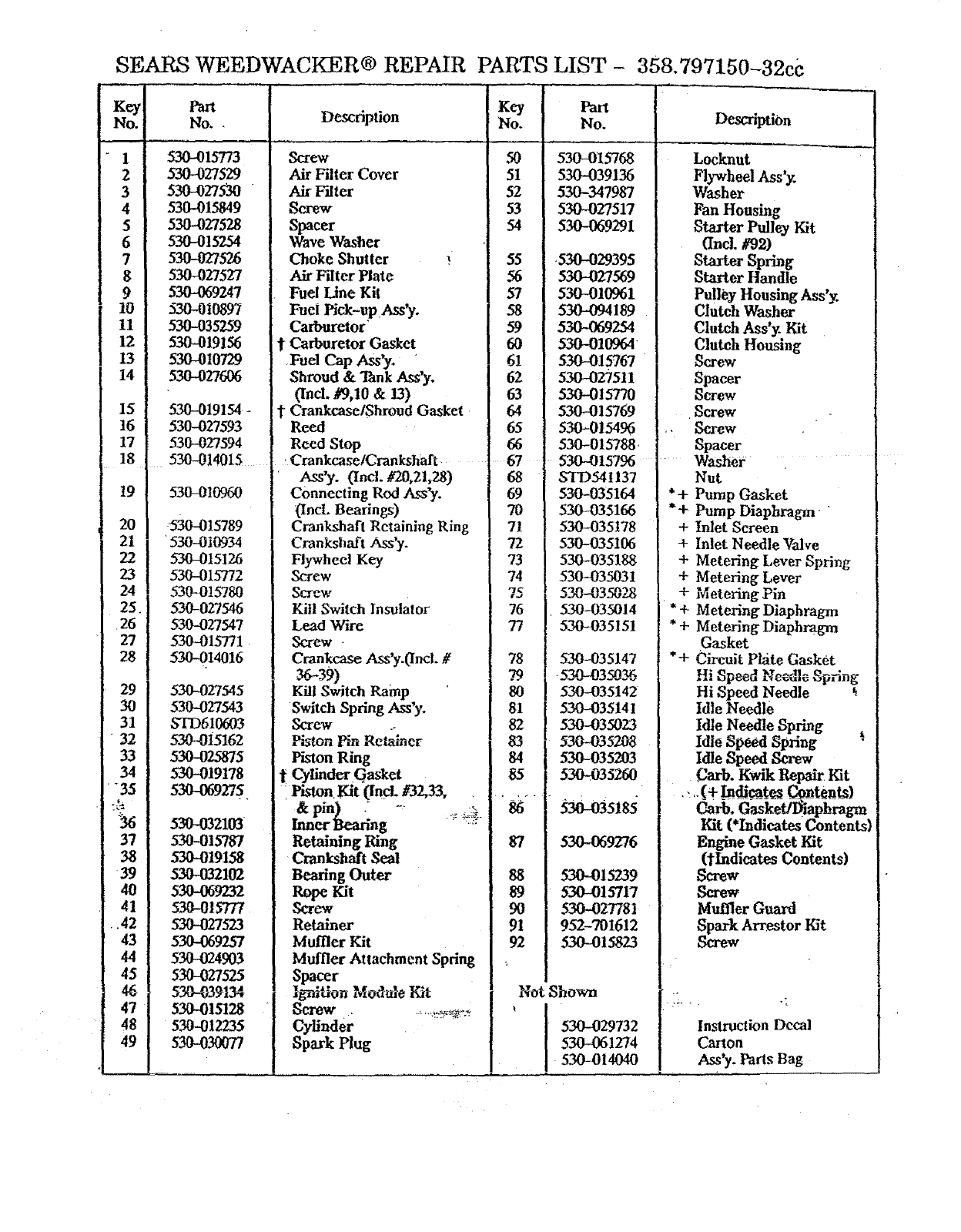 User Manual: Craftsman 358797150 358797150 CRAFTSMAN WEEDWACKER - Manuals and Guides View the owners manual for your CRAFTSMAN WEEDWACKER #358797150. Home:Lawn & Garden Parts:Craftsman Parts:358797150 Craftsman Grass trimmer (weed wacker) Manual