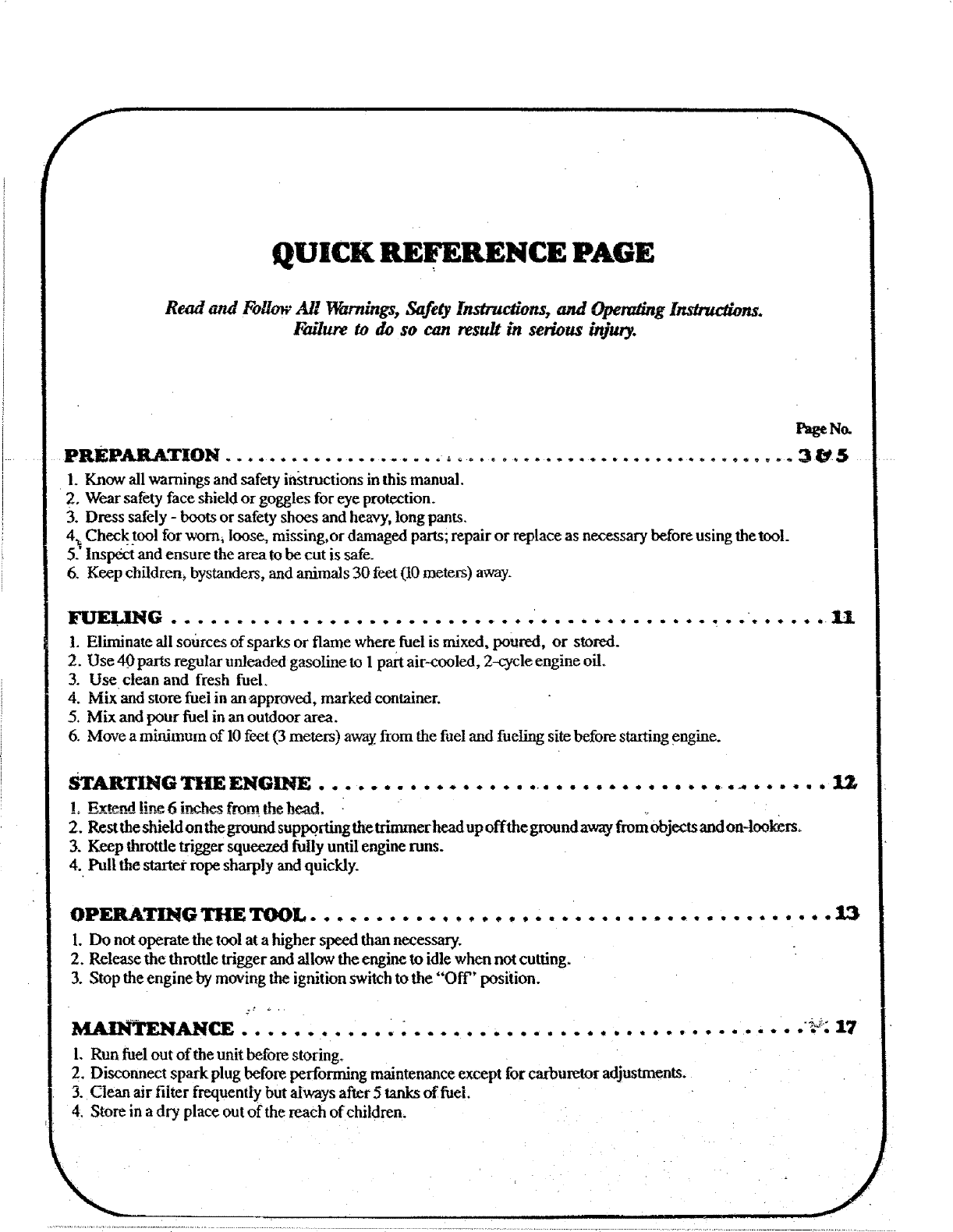 STARTER ROPE REPLACEMENT.- ................ 18