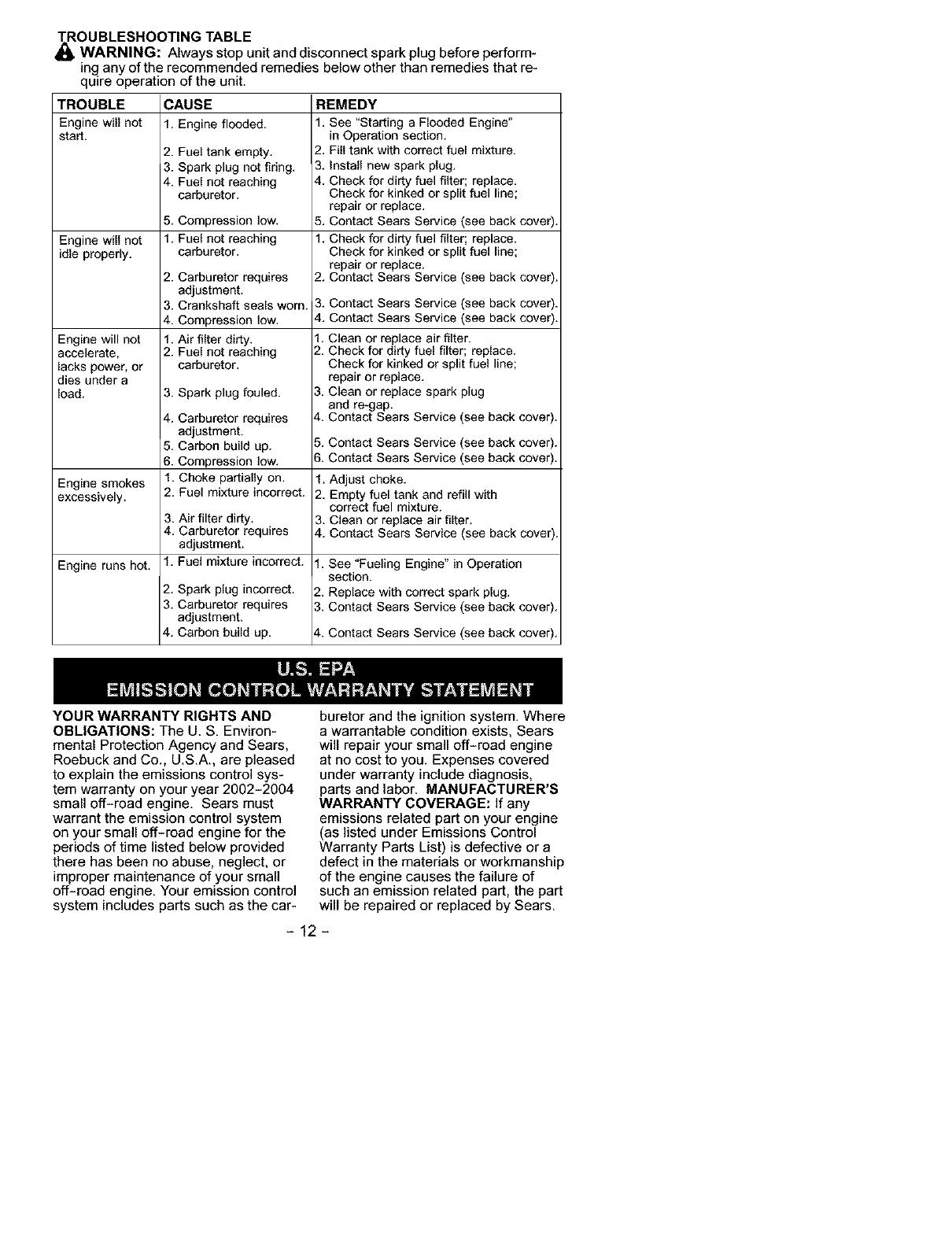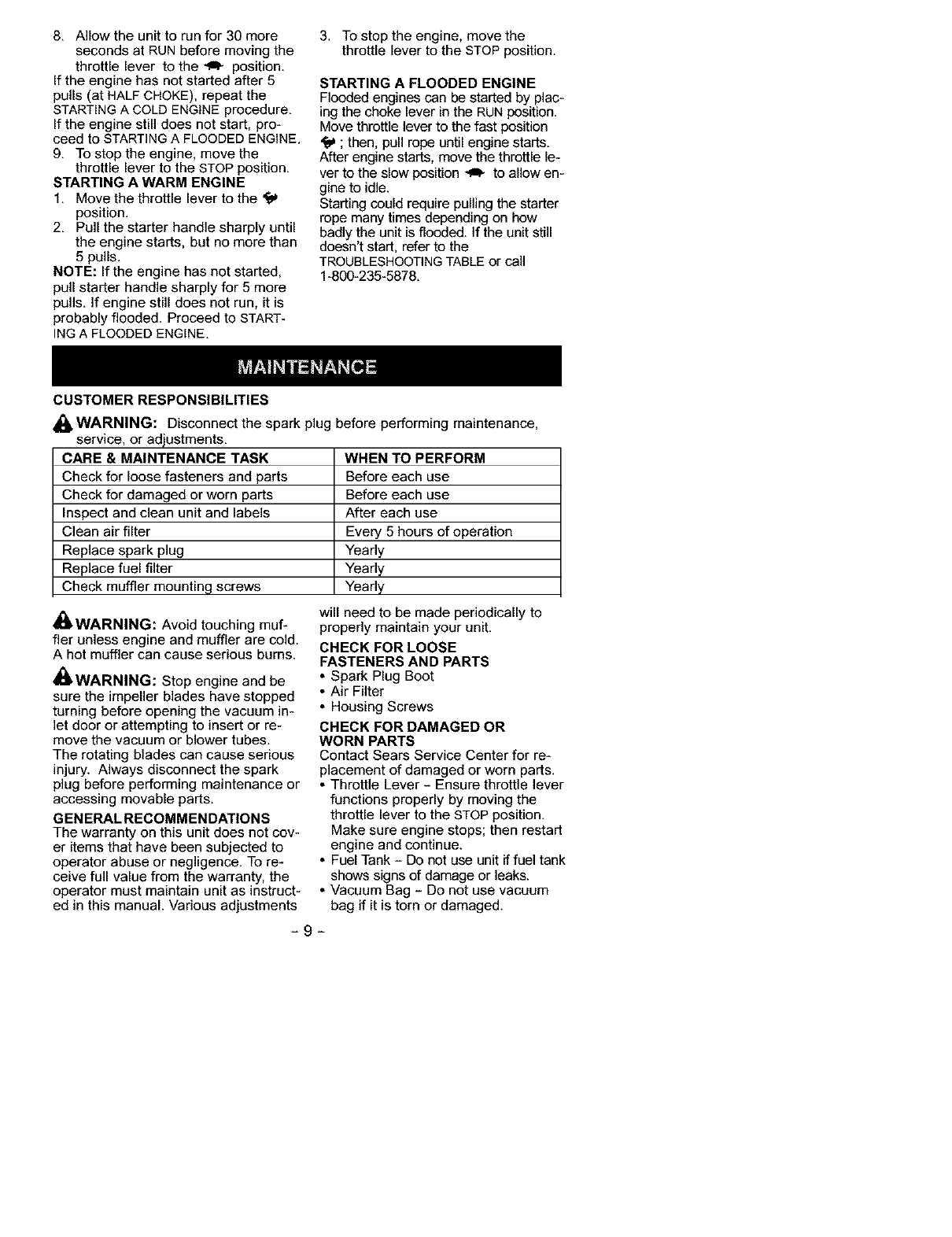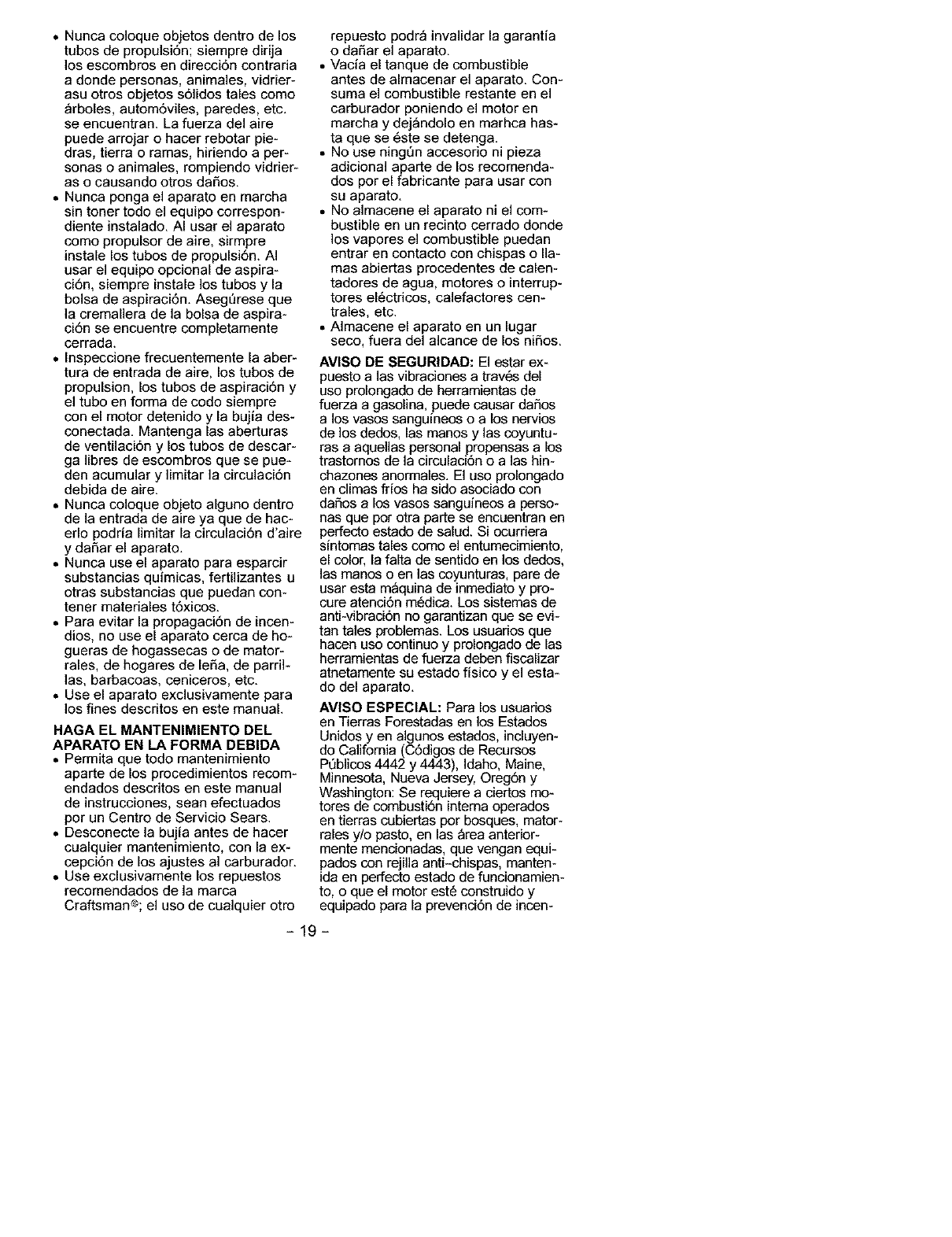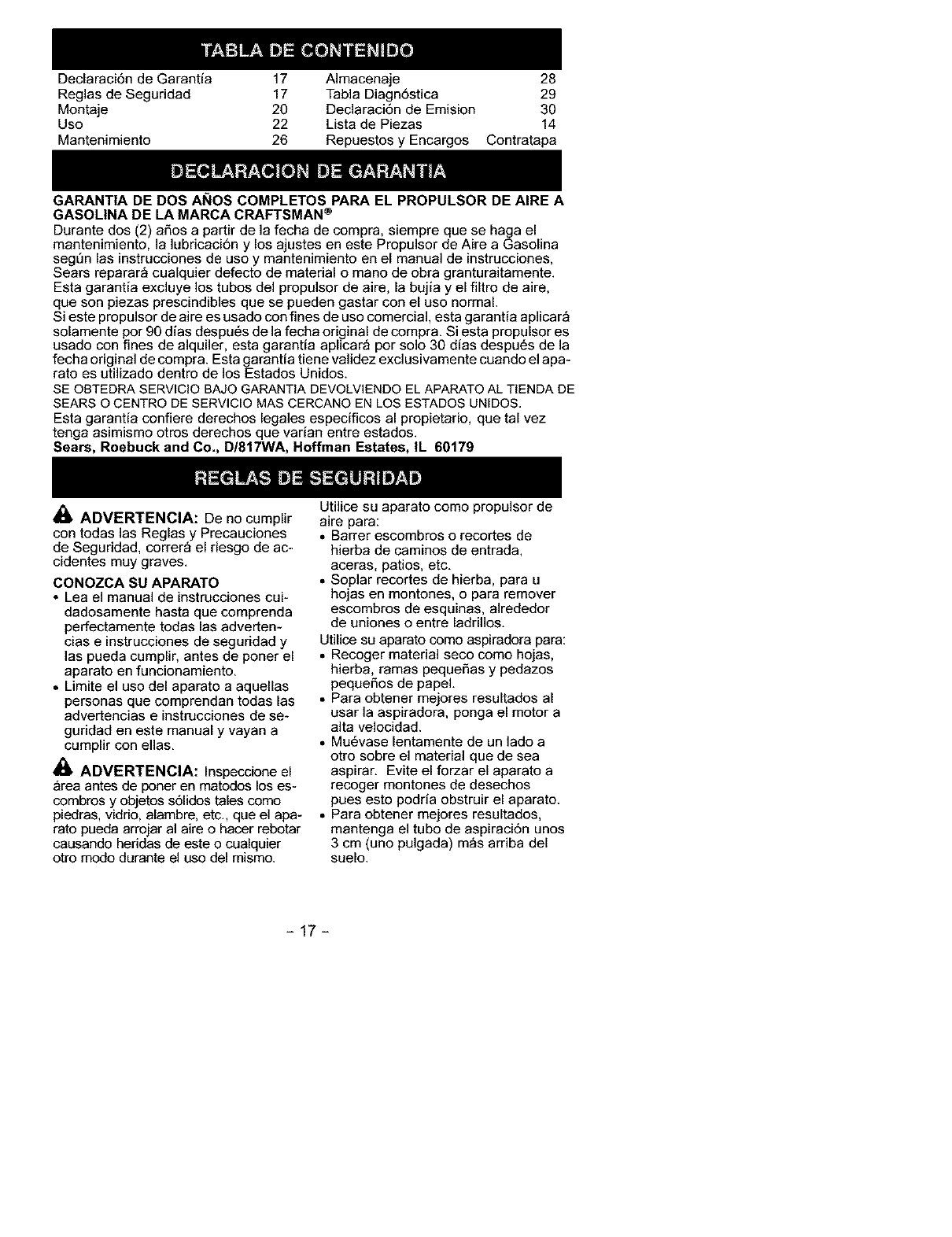 FULL TWO YEAR WARRANTY ON CRAFTSMAN ® GAS BLOWER
