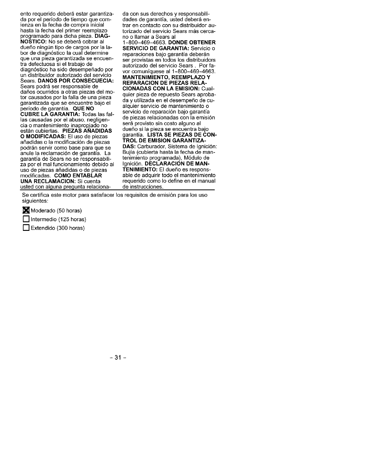 Se certifica este motor para satisfacer los requisitos de emisi6n para los uso