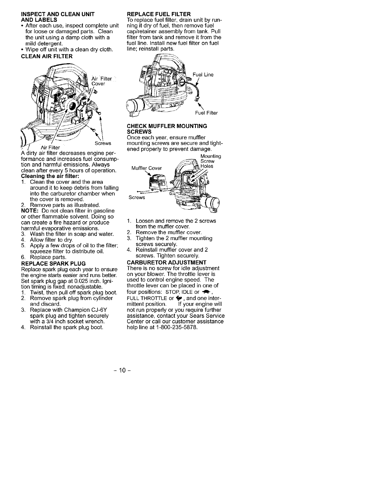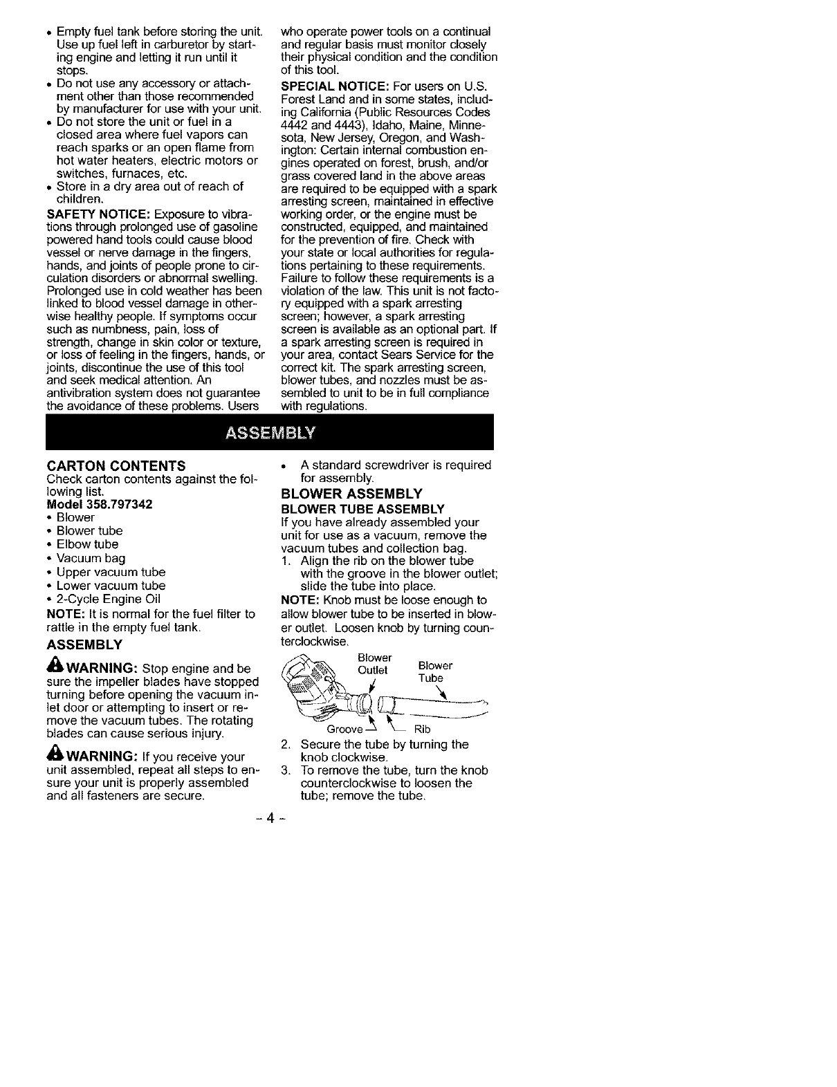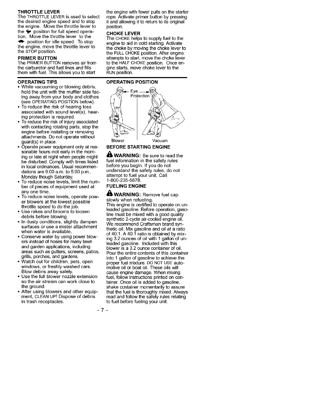Craftsman 358797342 User Manual BLOWER Manuals And Guides L0309340
