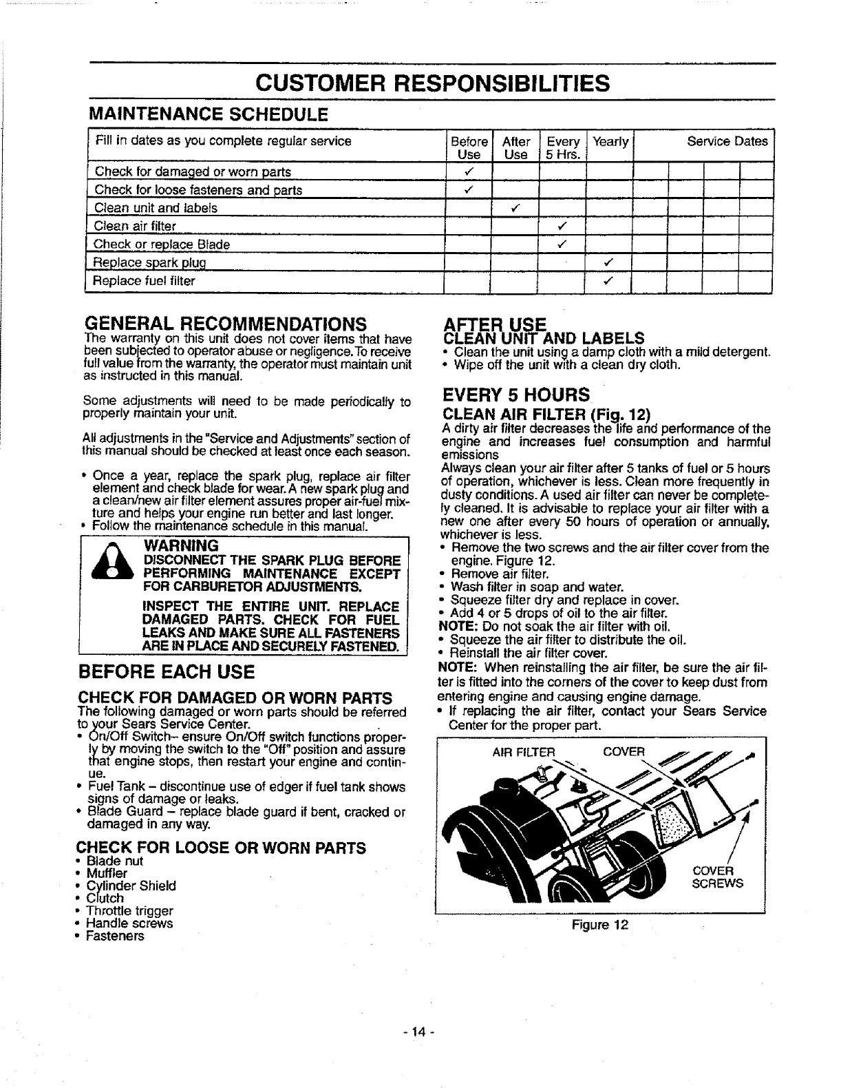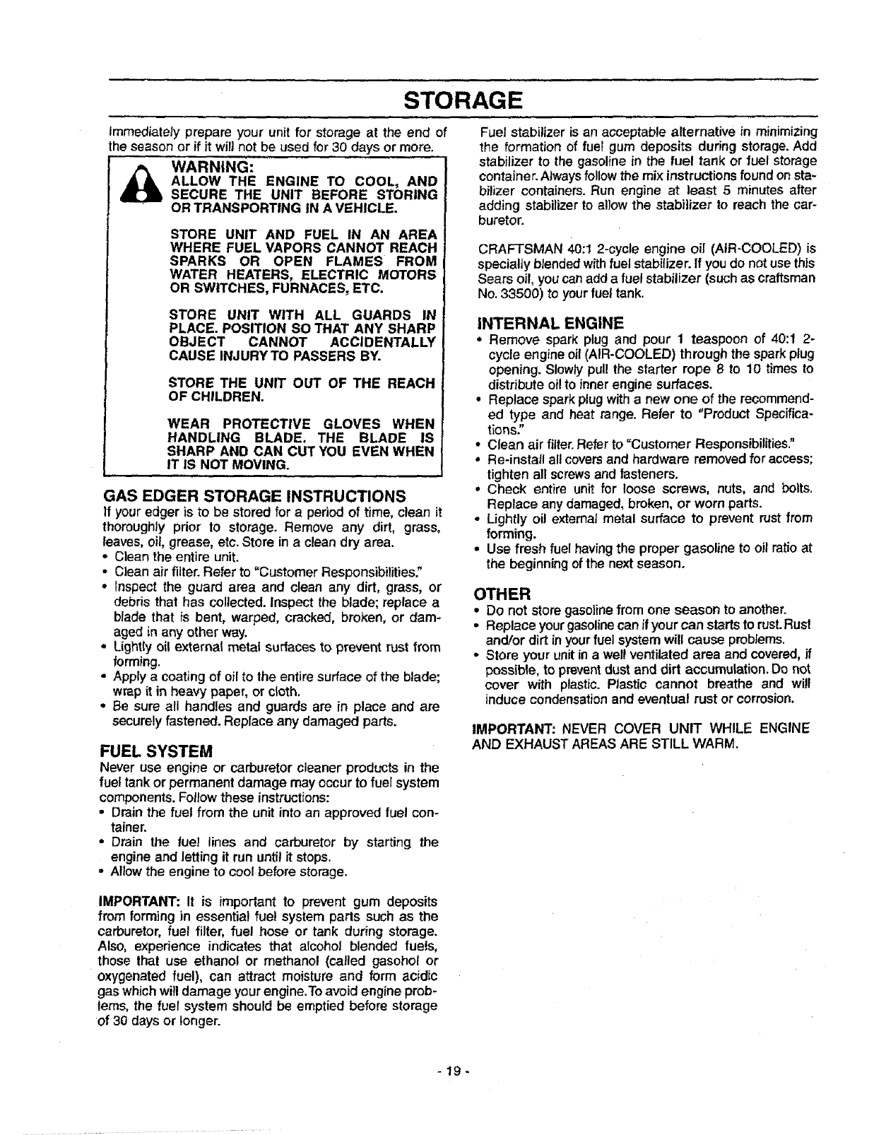 Craftsman 358797450 User Manual GAS EDGER Manuals And Guides L0710522