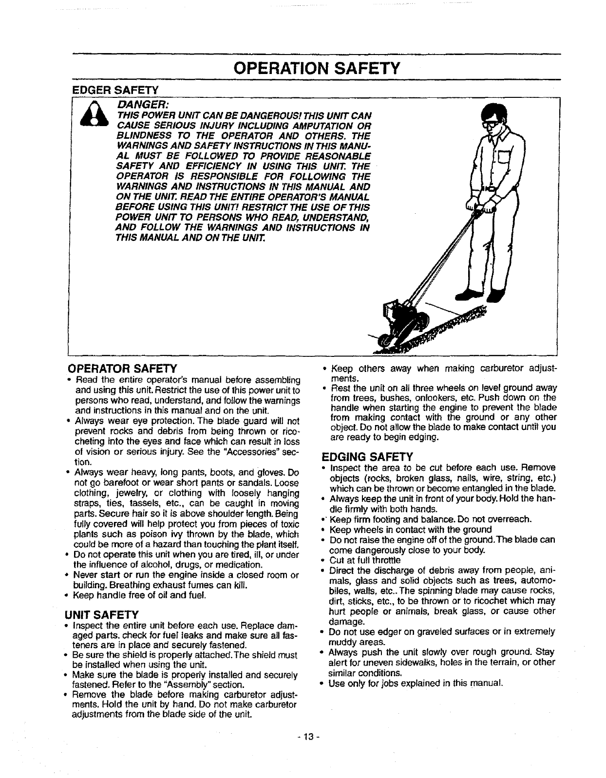 CRAFTSMAN Edger Manual L0710522 CRAFTSMAN Edger Owner's Manual, CRAFTSMAN Edger installation guides