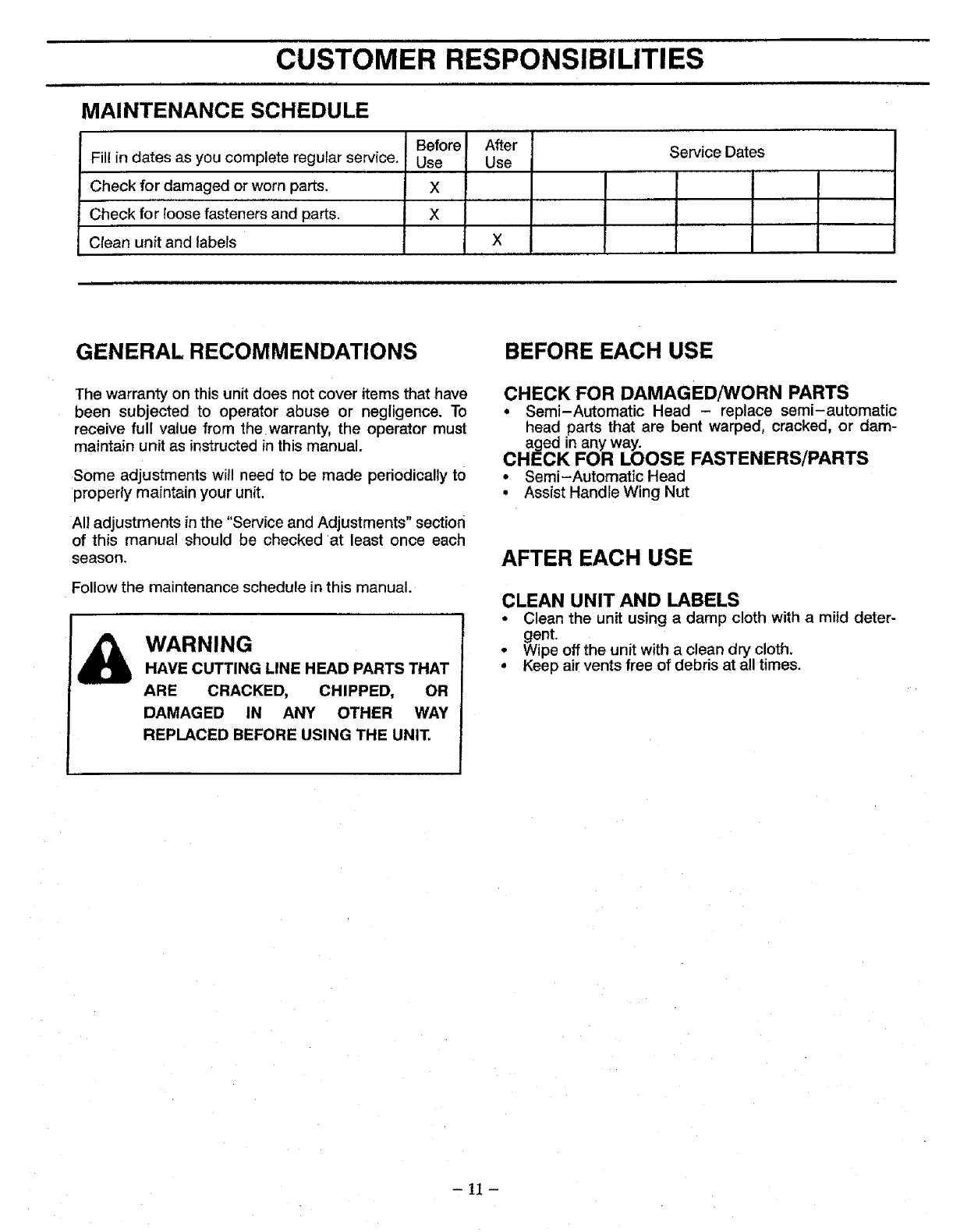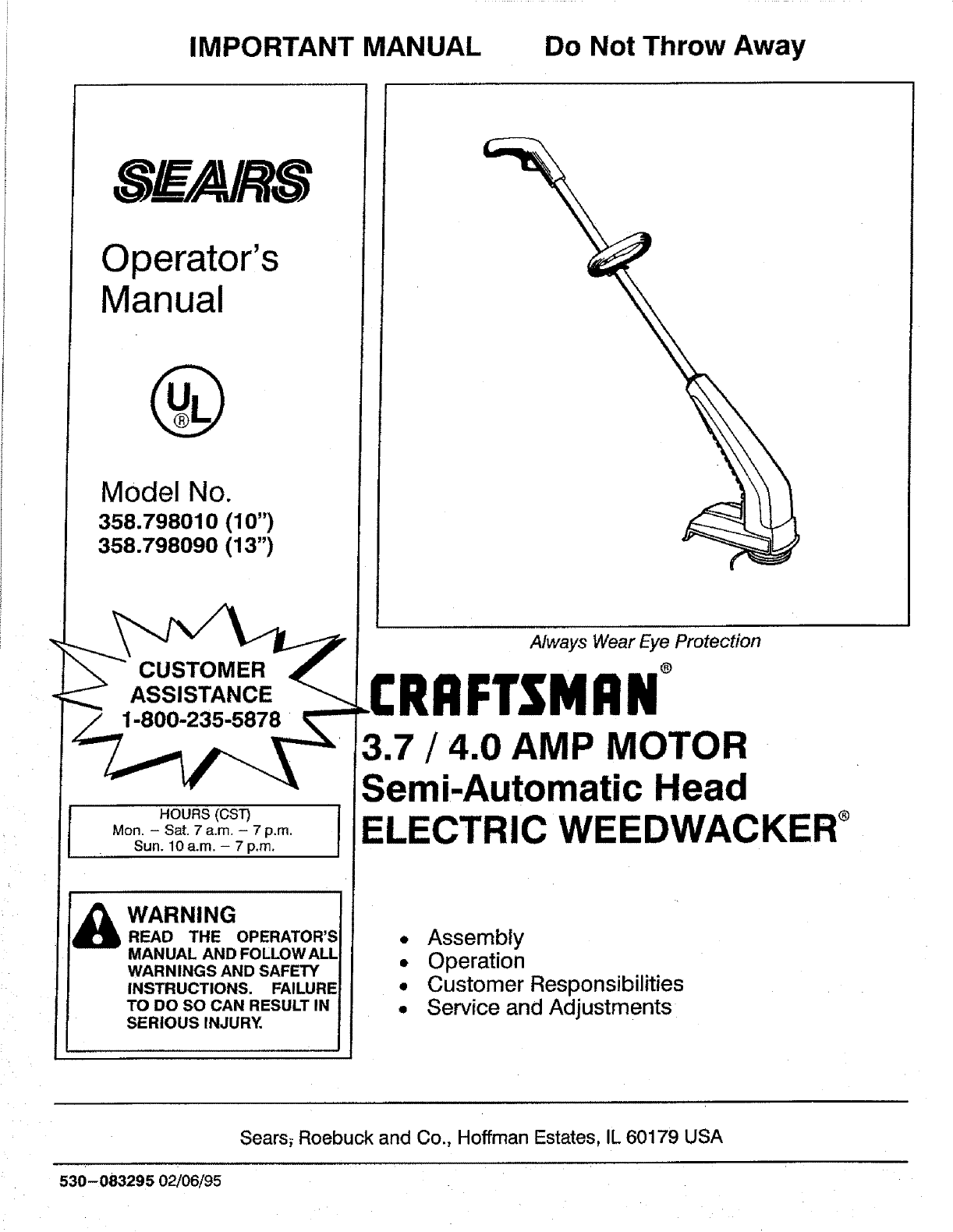Craftsman 358798010 User Manual TRIMMER Manuals And Guides L0709263