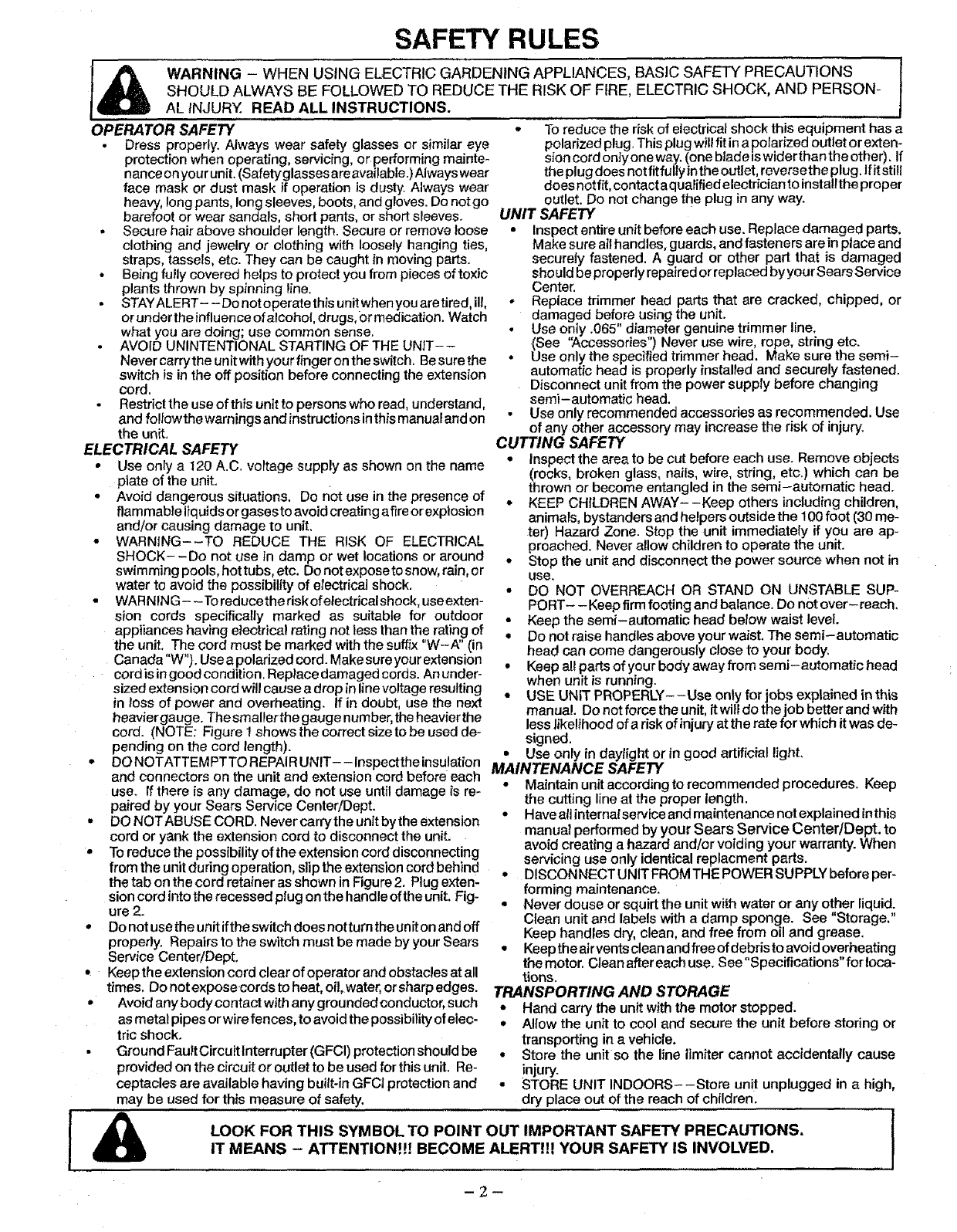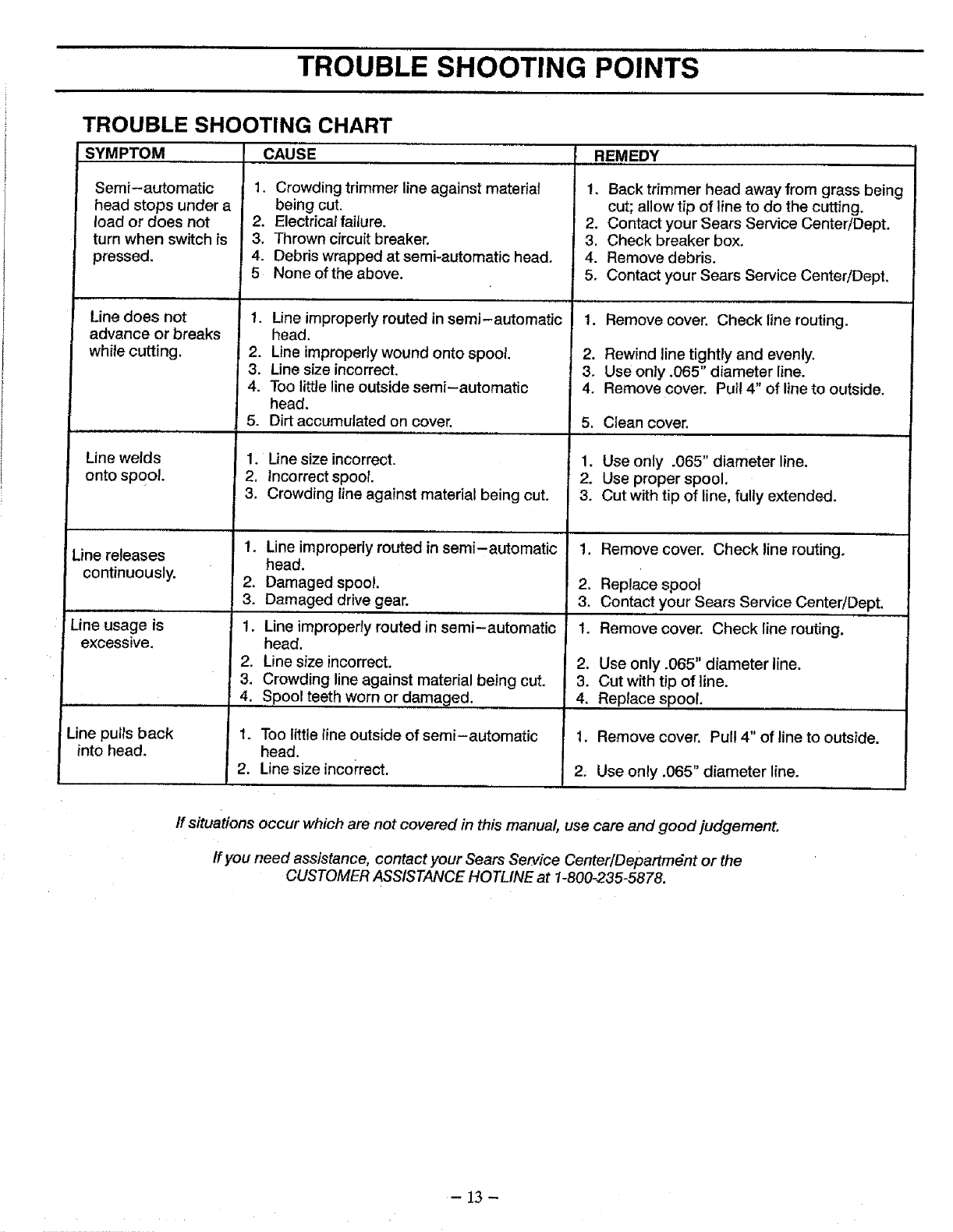 If you need assistance, contact your SEARS Service Center/Depart-