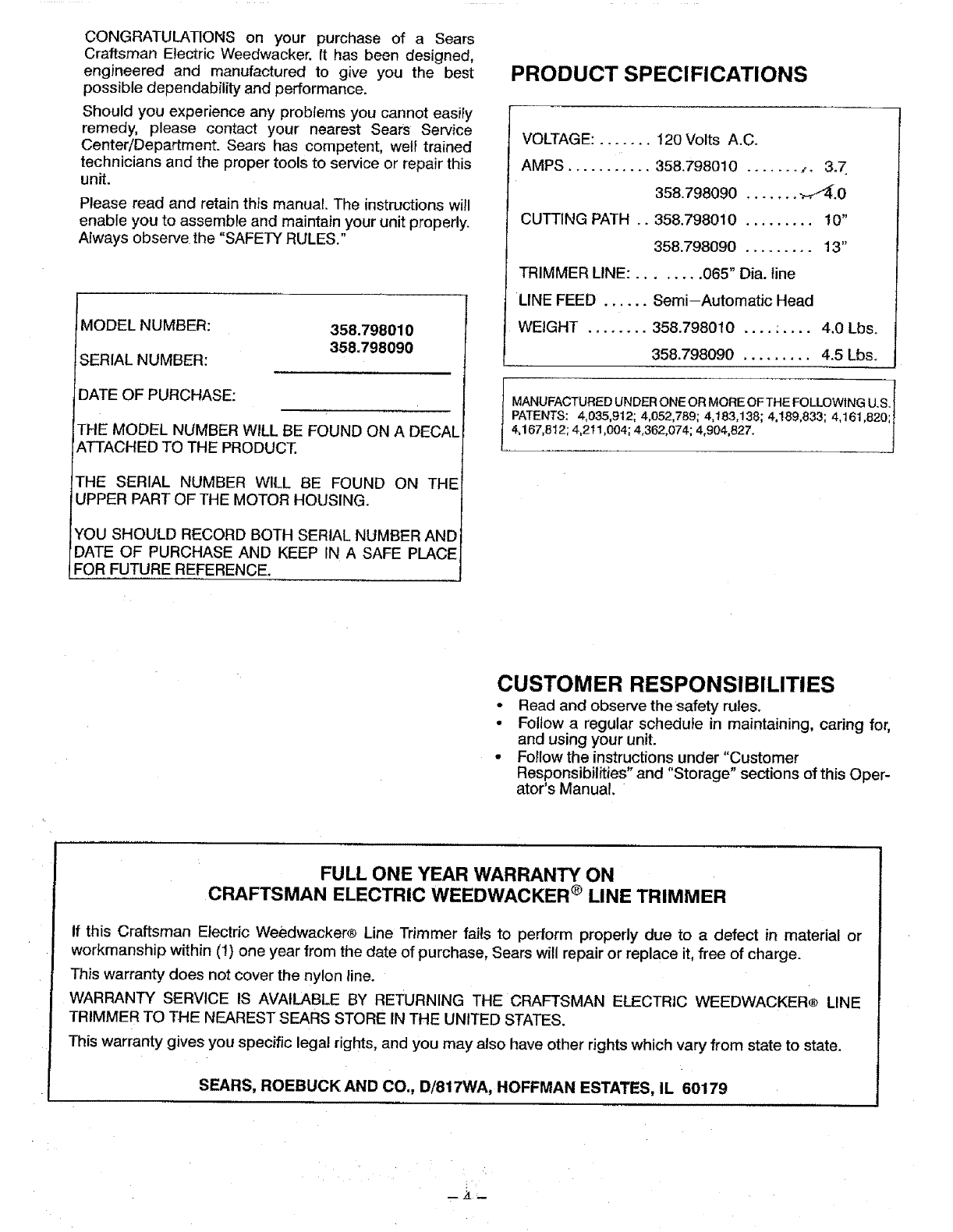 • MODEL NUMBER- 358.798010 /358.798090