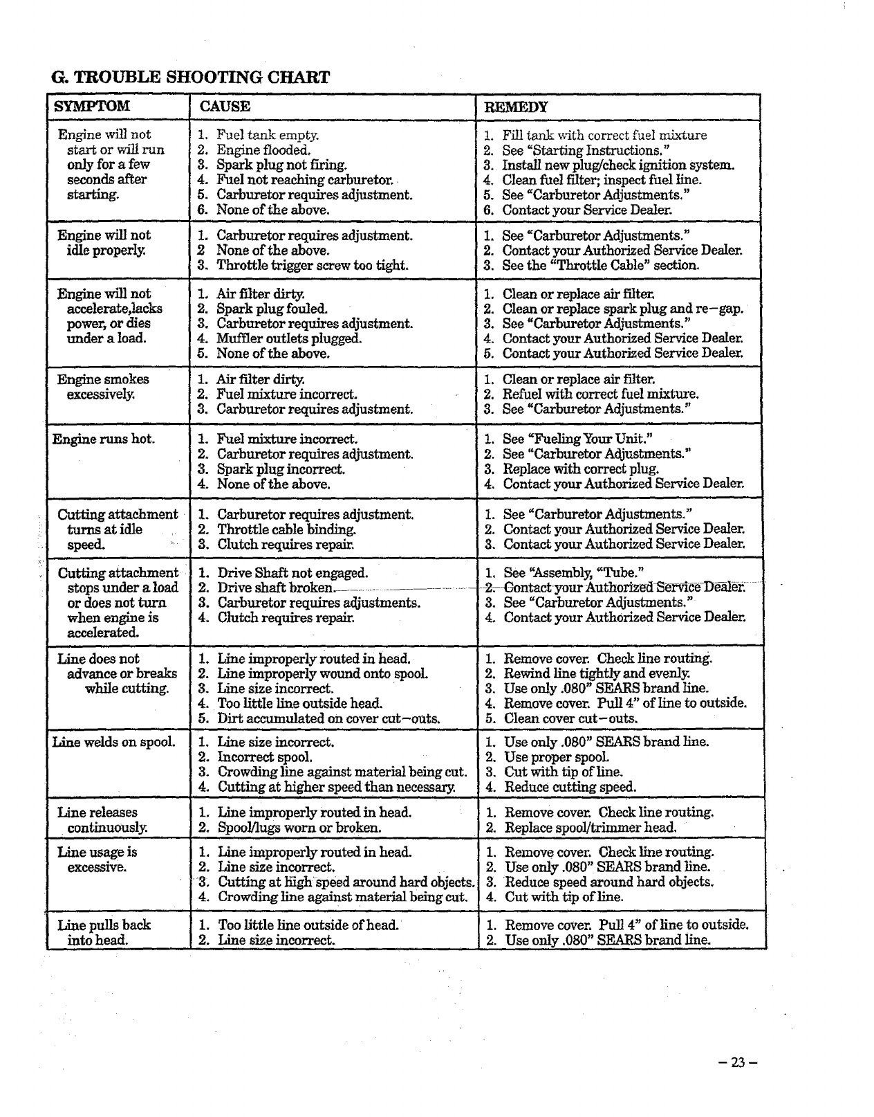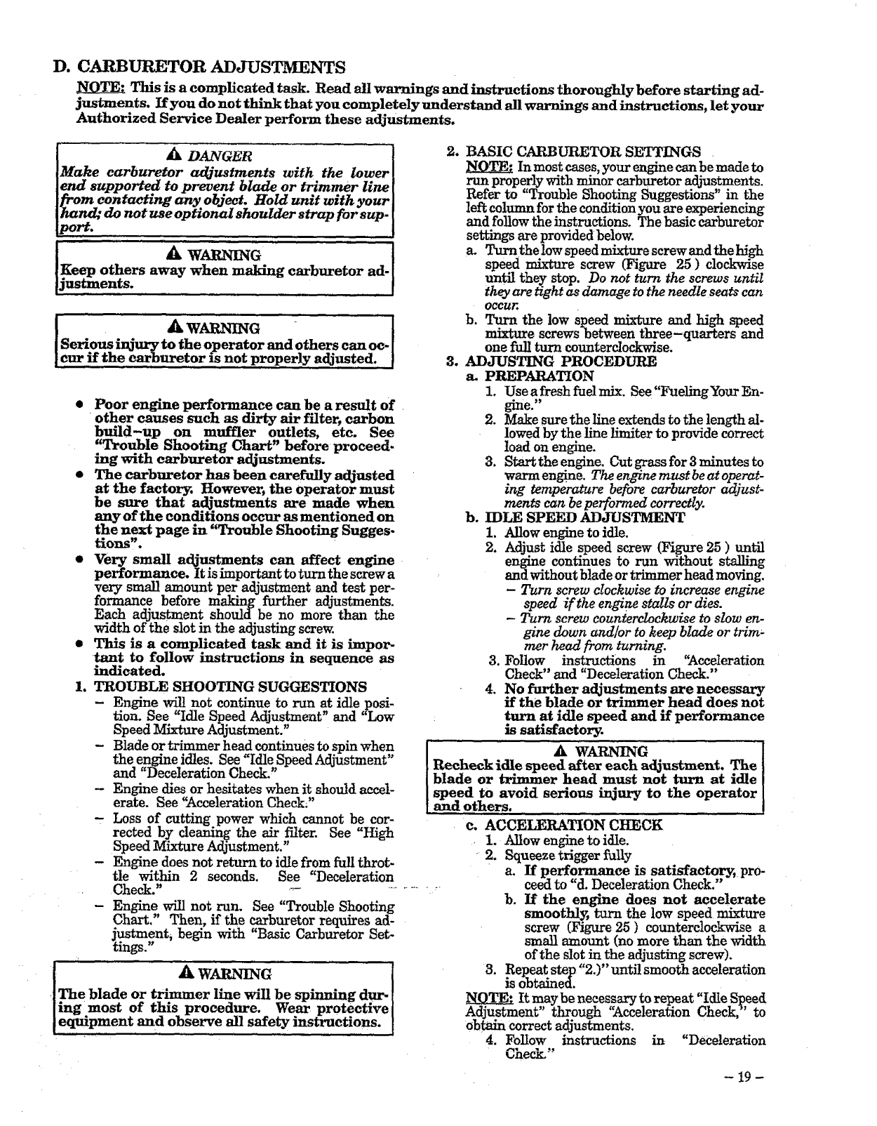 • Service and Adjustments