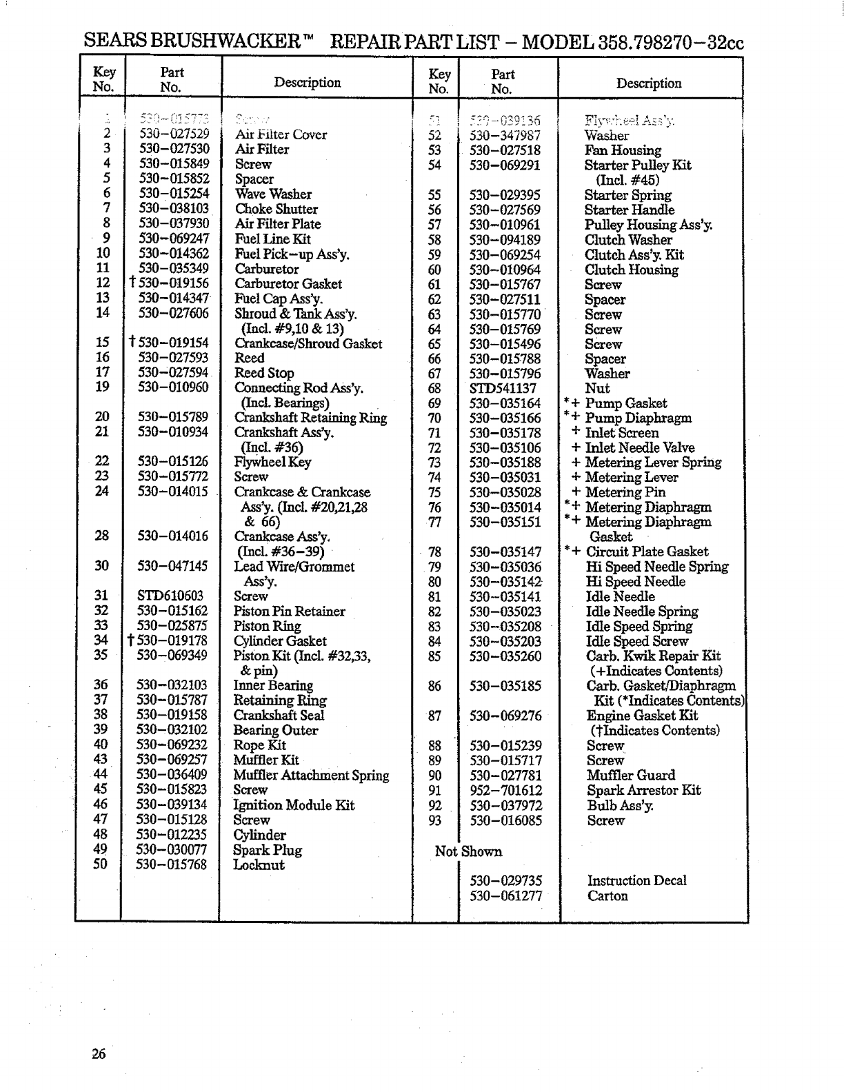 User Manual: Craftsman 358798270 358798270 CRAFTSMAN BRUSHWACKER - Manuals and Guides View the owners manual for your CRAFTSMAN BRUSHWACKER #358798270. Home:Lawn & Garden Parts:Craftsman Parts:358798270 Craftsman Grass trimmer (weed wacker) Manual