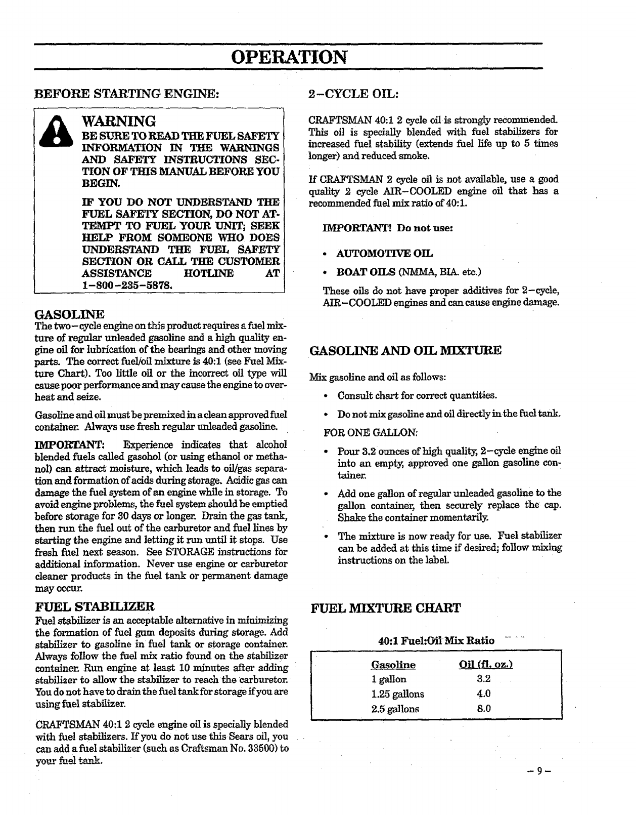 LUBRICATION: Gasoline/OilMixture- 40:1