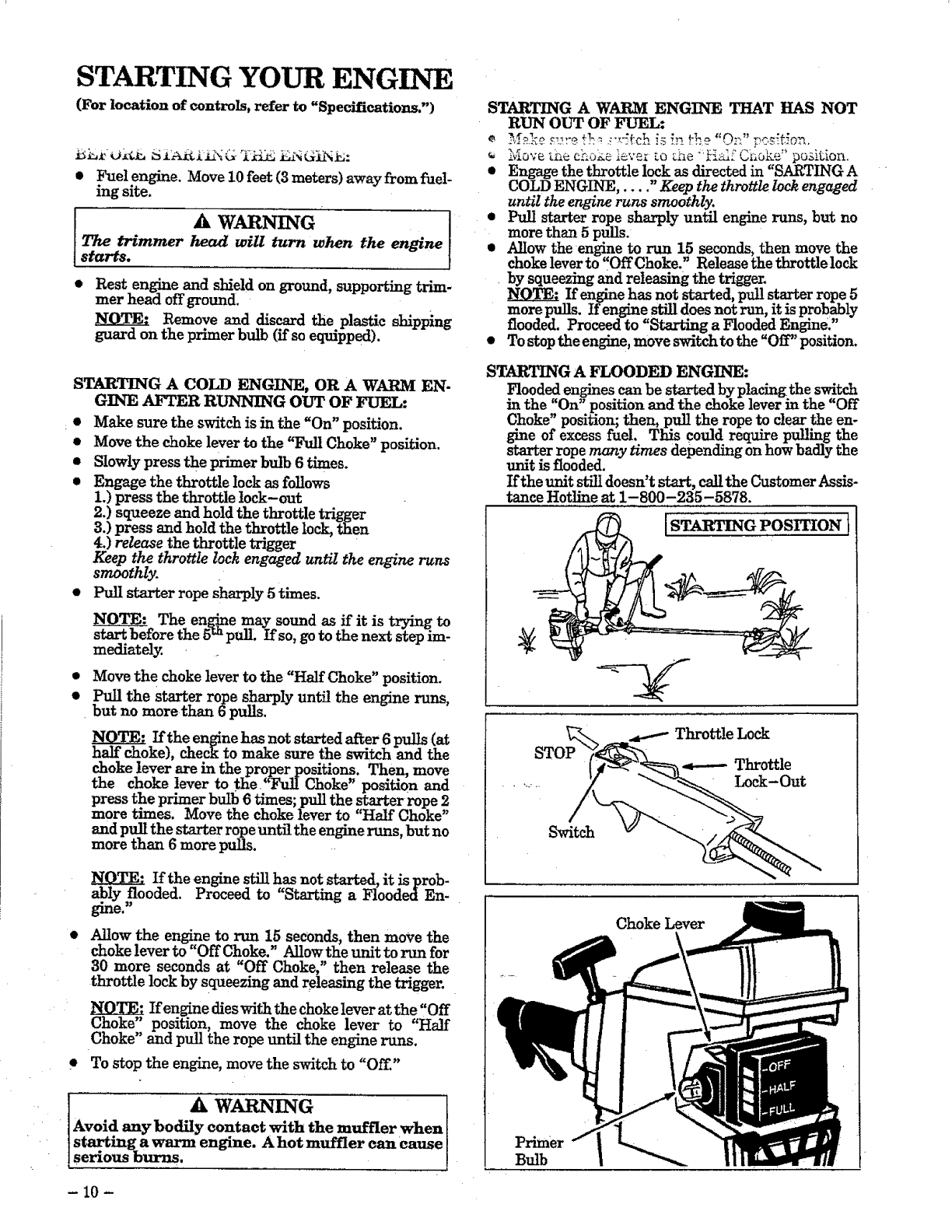 STARTING YOUR ENGINE ................ 10