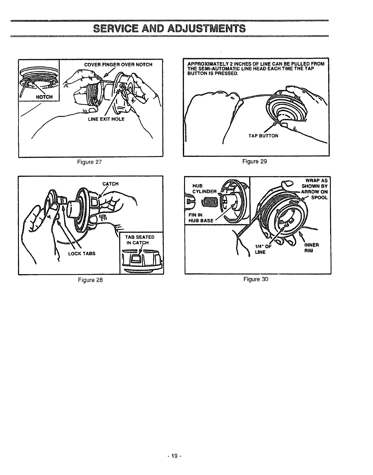 Line pulls back 1 Too little line outside of head, 1 Remove cover. Pull 4" of line to outside.
