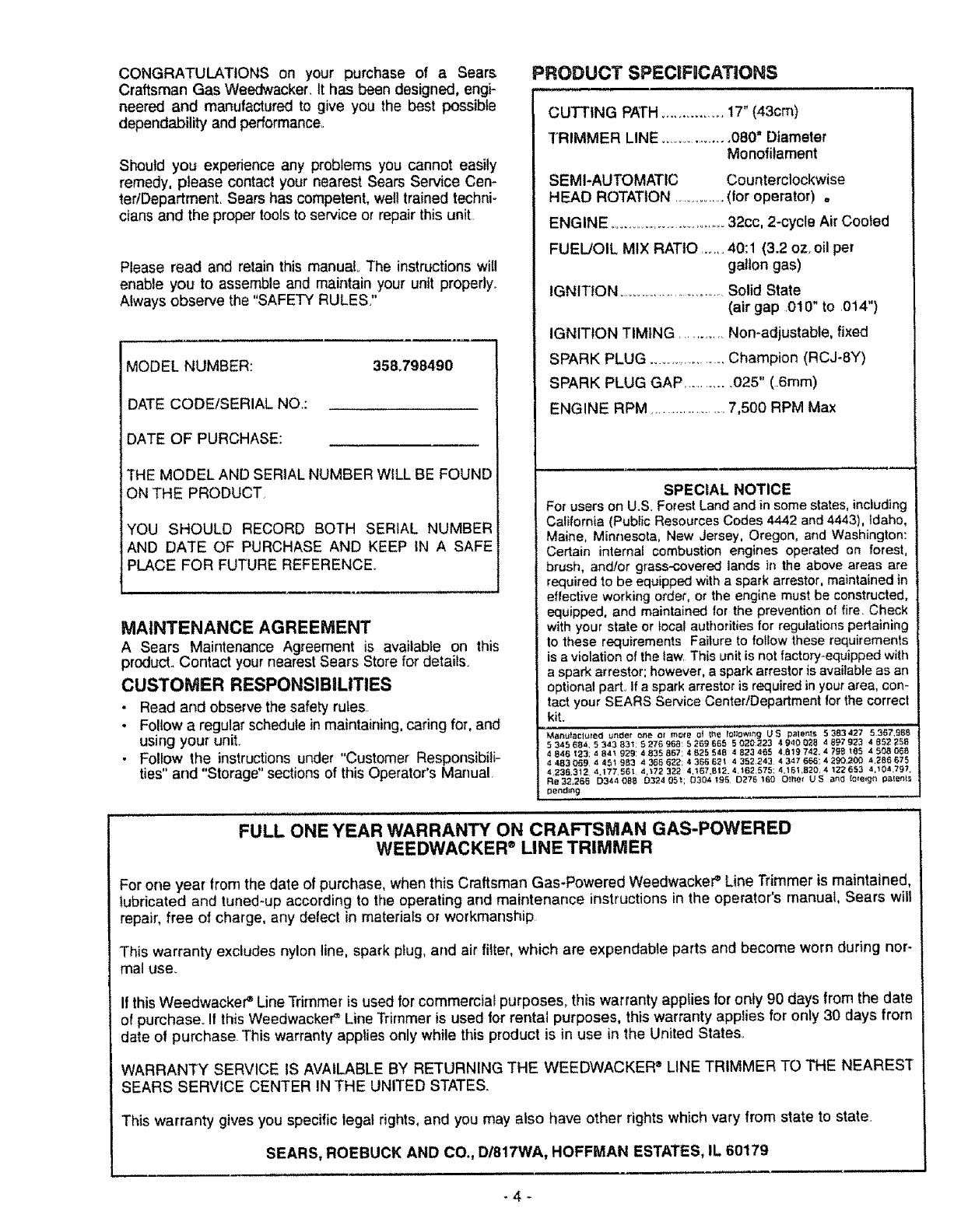 Craftsman 358798490 User Manual Line Trimmer/Weedwacker/Brushwacker/Brush Cutter* Manuals And Guides L0806176