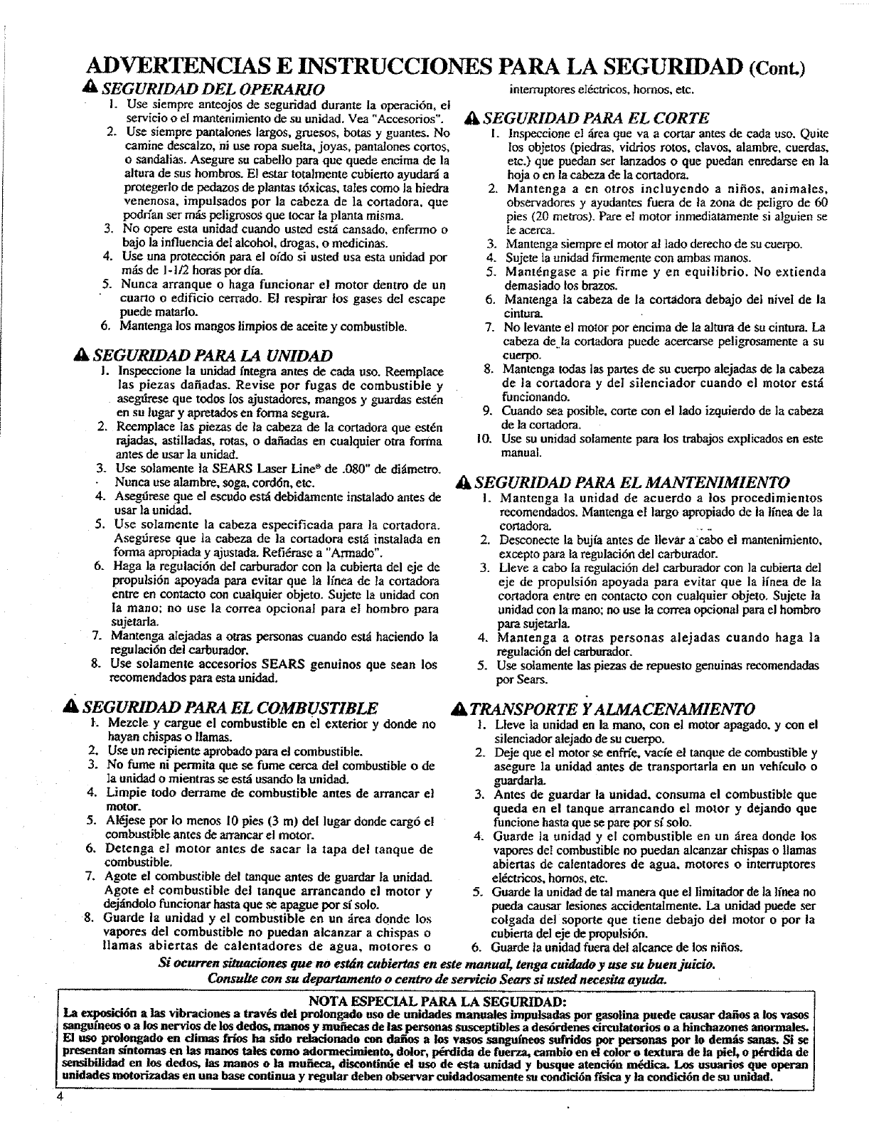Lea y siga todas las advertencias e instrucciones para seguridad y las instrucciones para la operaci6n.