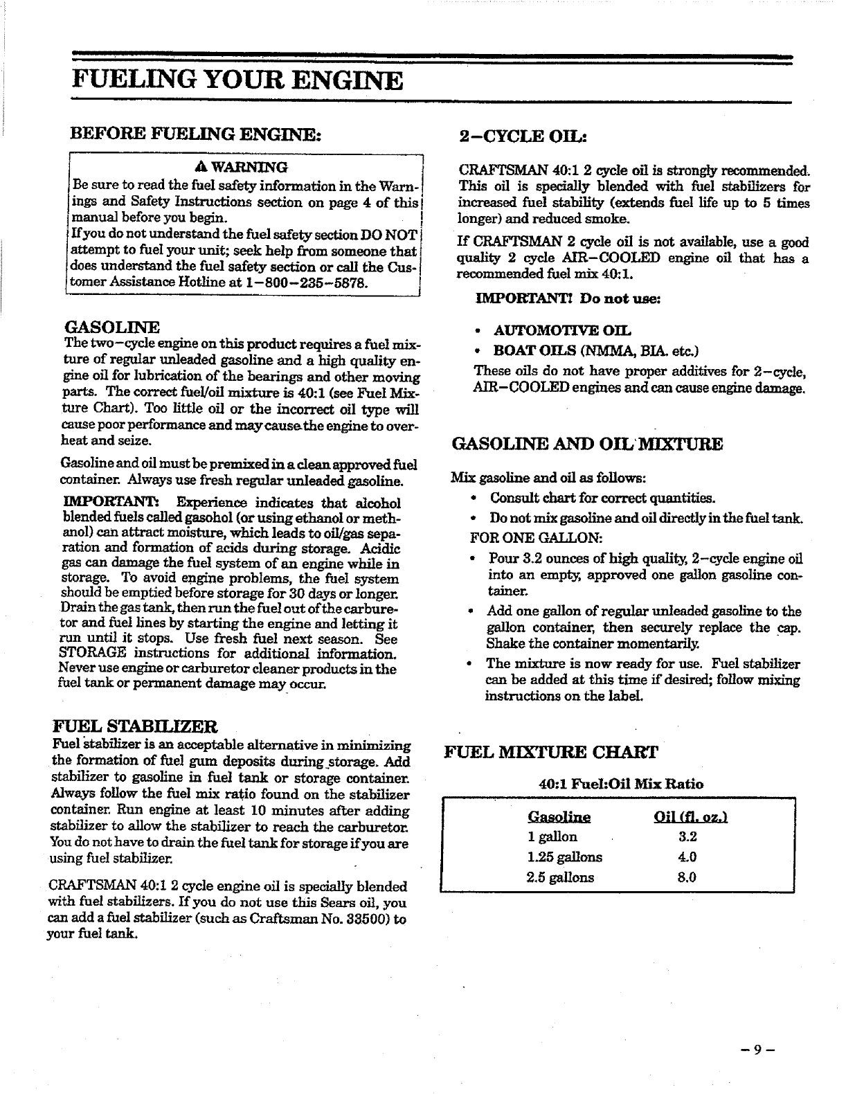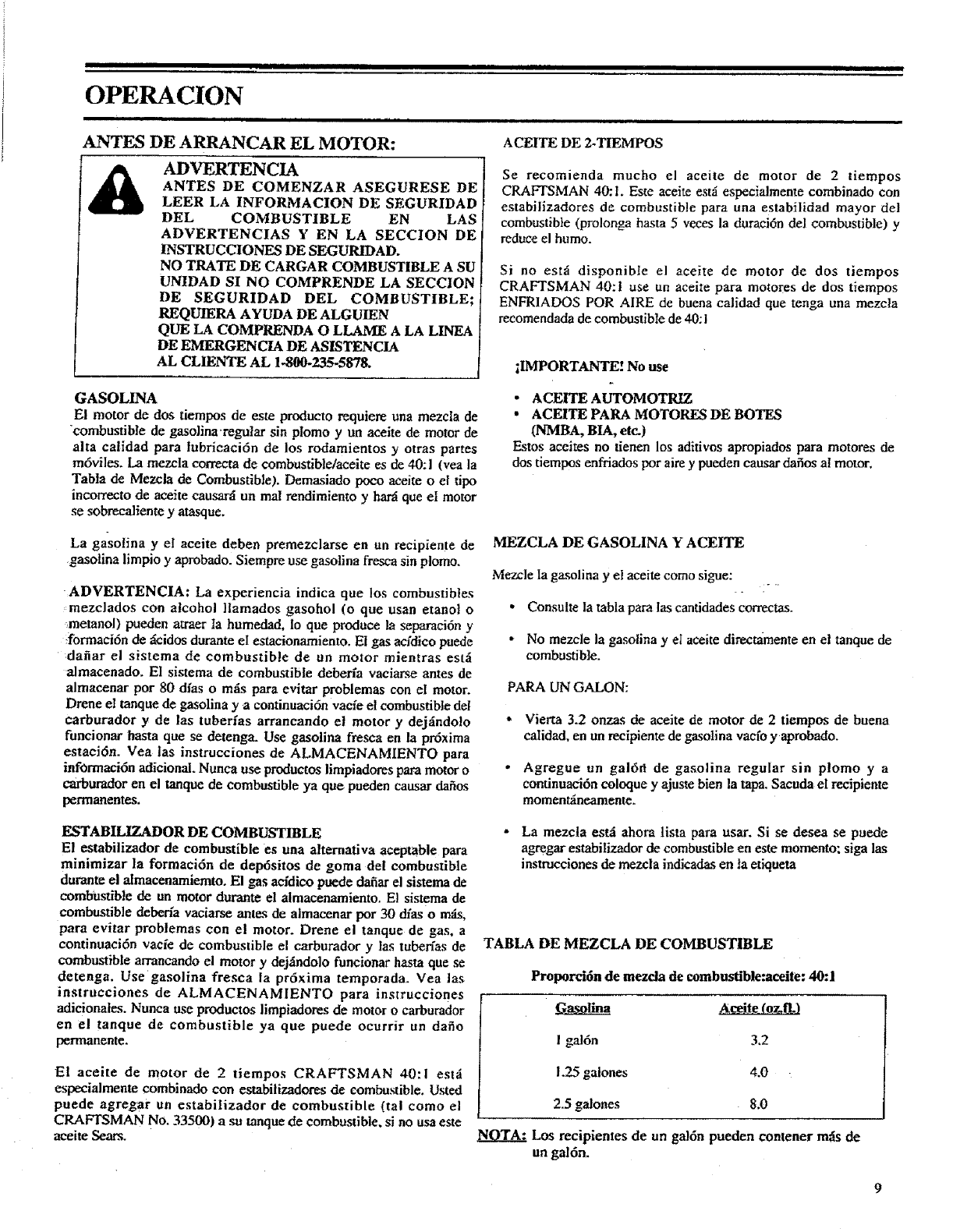 2. Use una mezcla de 3.2 oz, de aceite para motor de 2fiempos enfriado por aire para I g_16n (3.8 II de