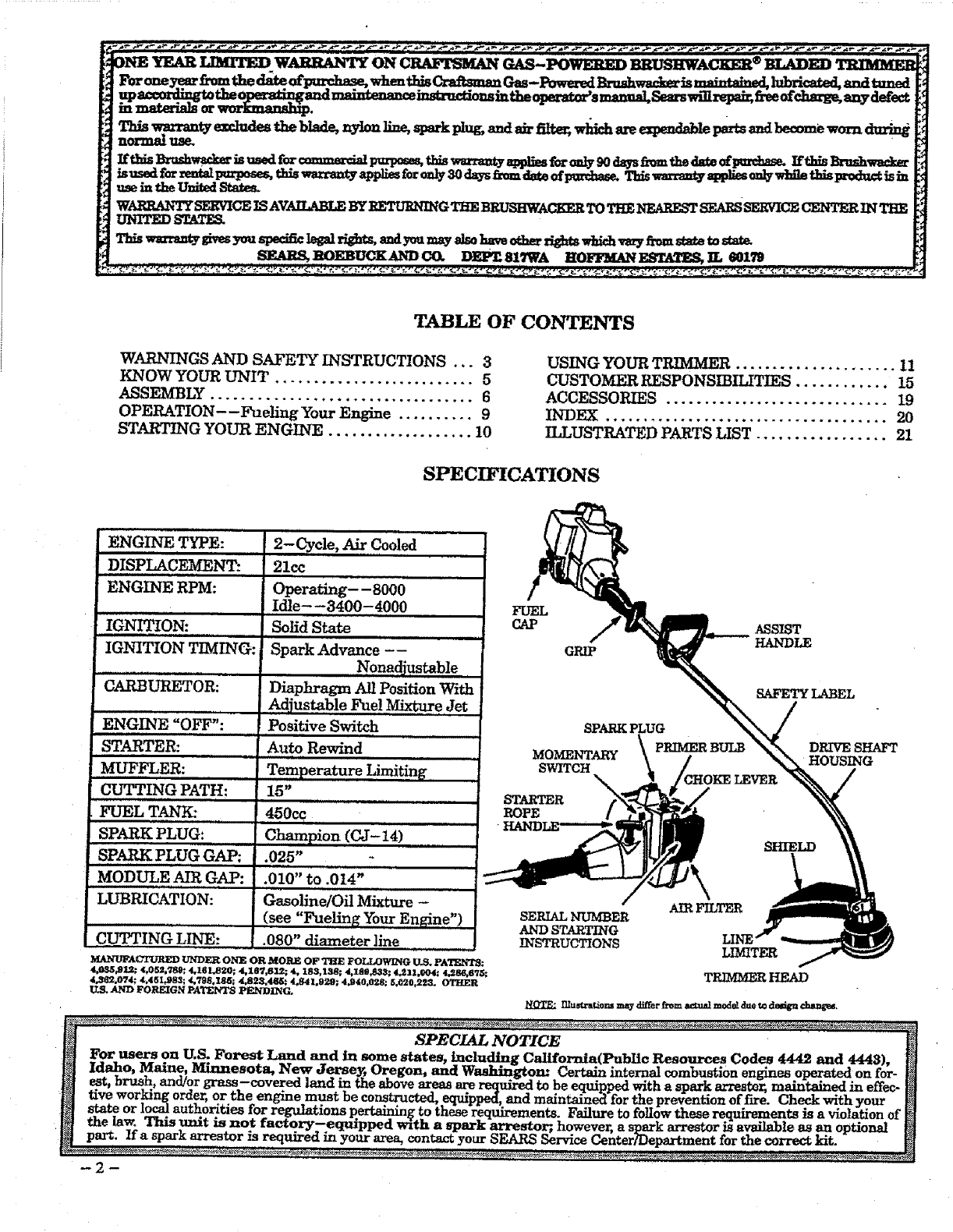 Craftsman 358799211 User Manual WEEDWACKER Manuals And Guides L0606263