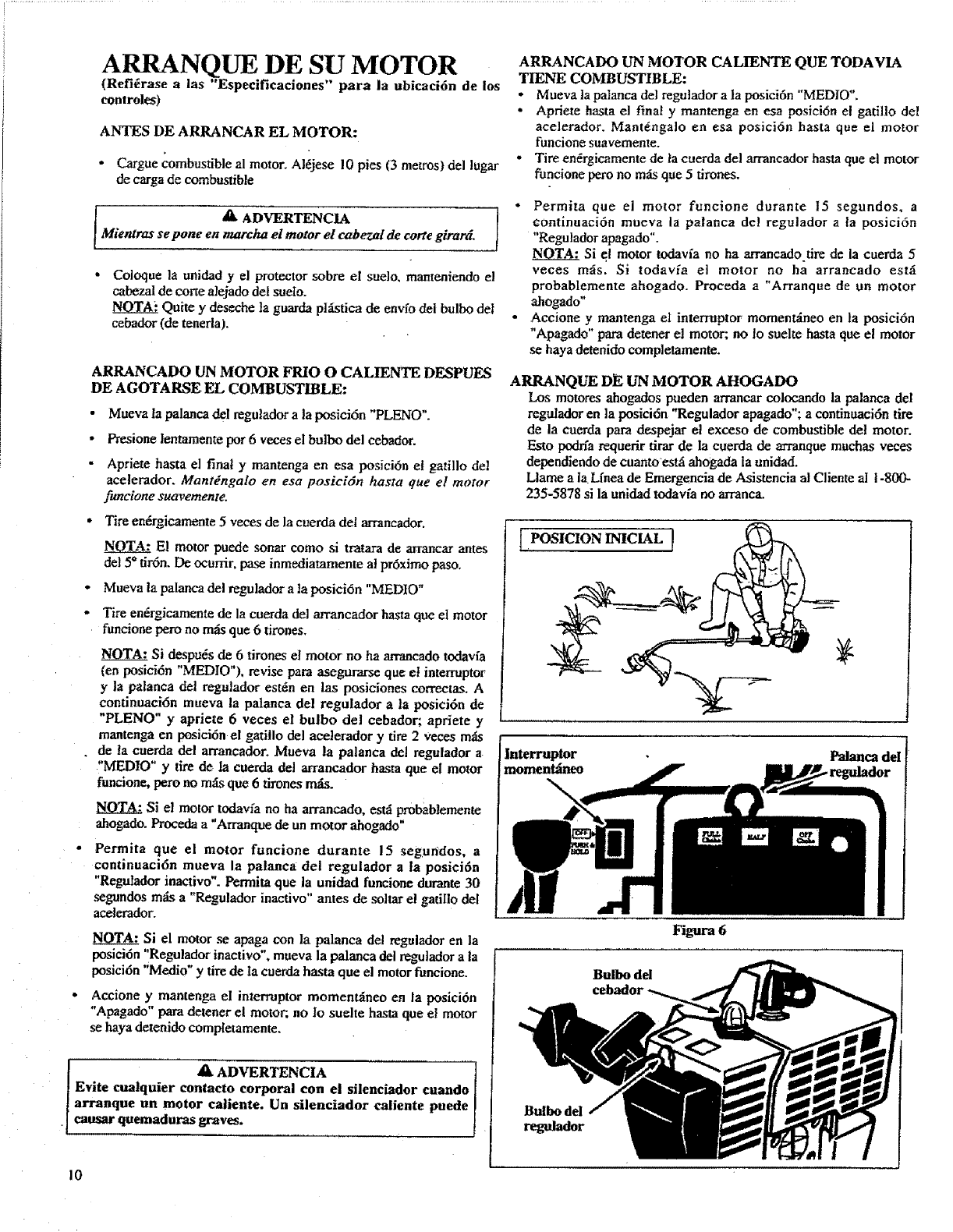 3, Mantenga el gatillo del acelerador apretado completamente basra que el motor funcione.